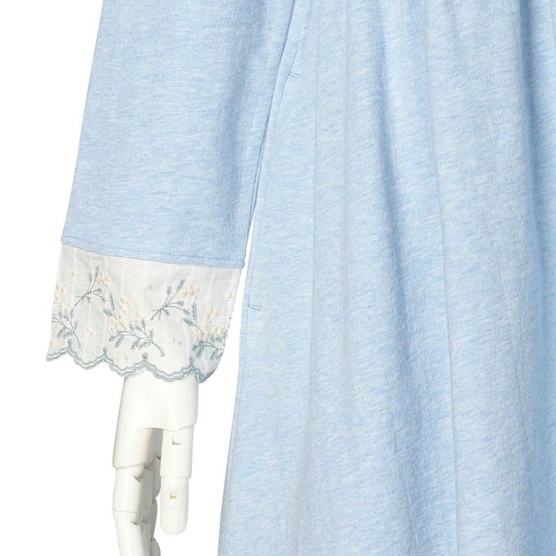 上品なミモザ柄のエンブレースがポイントのシリーズ。肌触りの良いコットン100%のインレイ素材を使用。ほどよい厚みで季節の変わり目や、春先のジャストシーズンにぴったりの仕上がりです。ソフトな雰囲気でレースが映えるアイボリーと、爽やかな杢調サックスの2色展開。25ベアフライスとのクロスコーディネートも楽しめます。