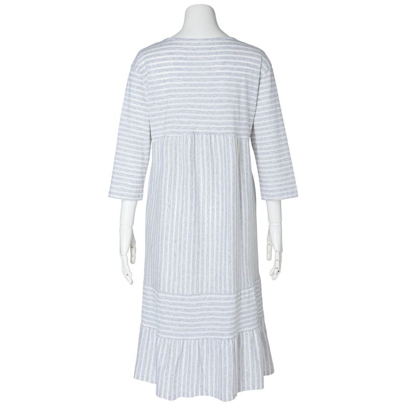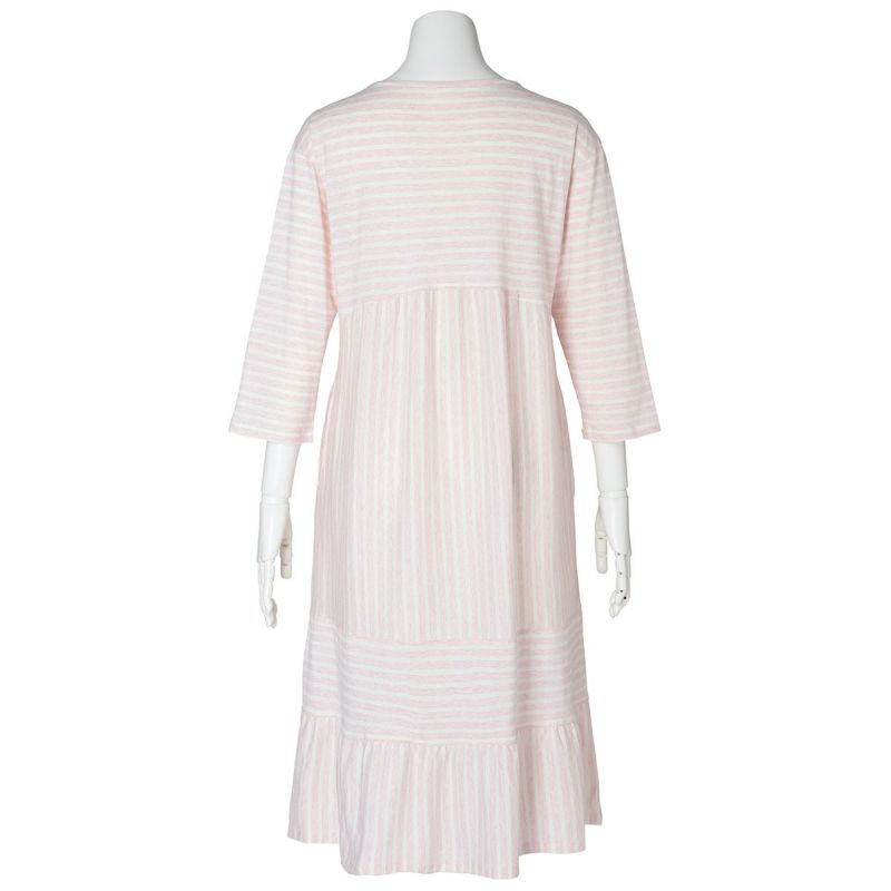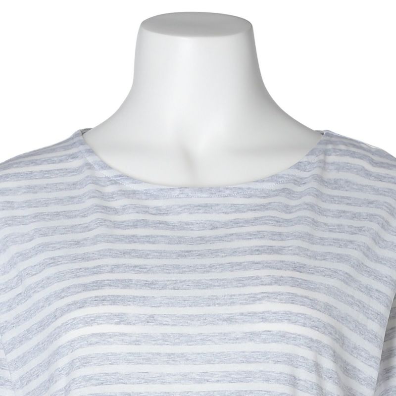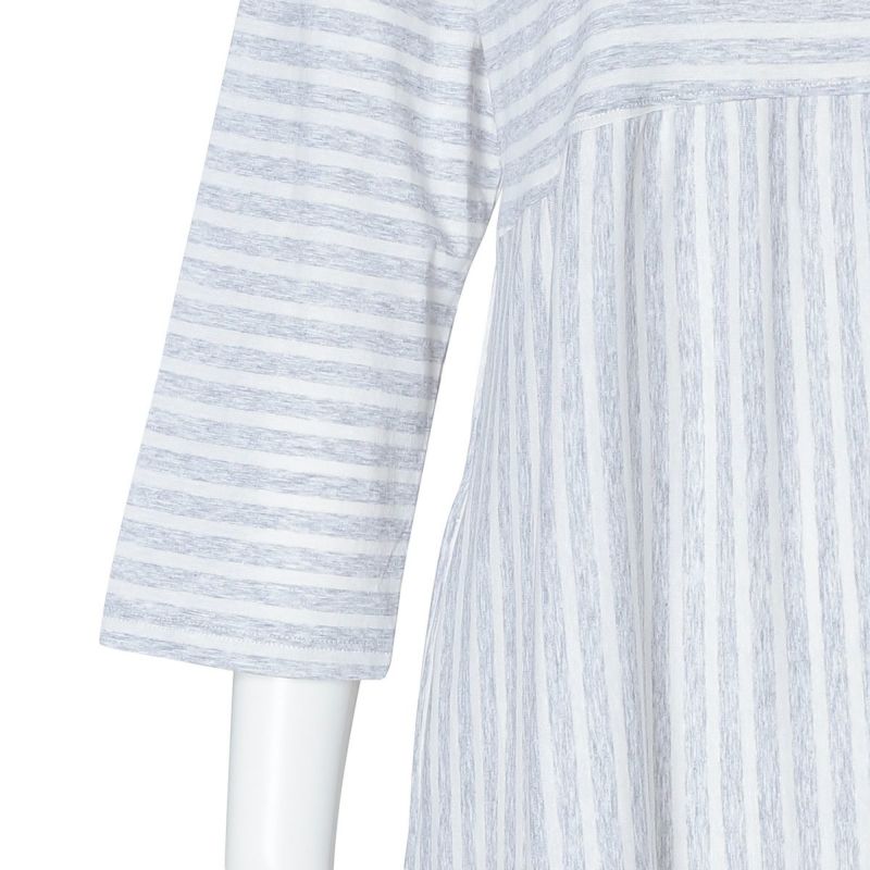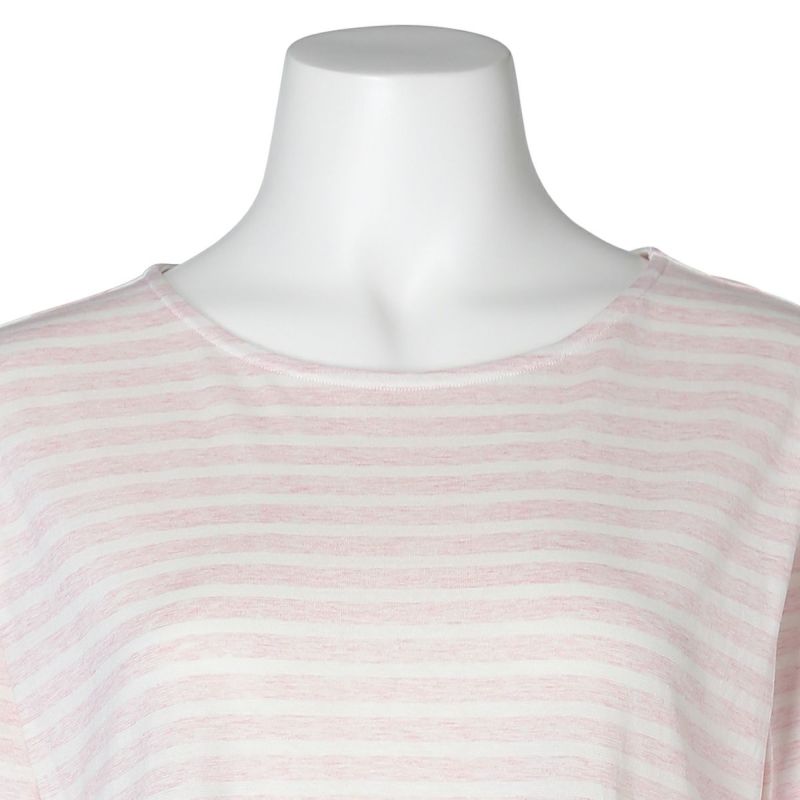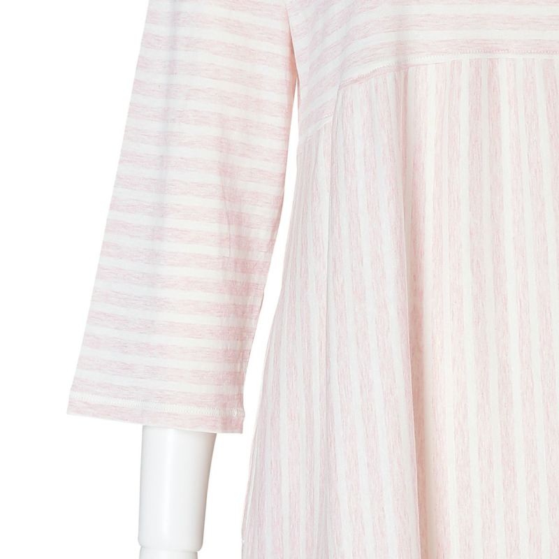綿100%の先染め素材をボーダーとストライプ柄で組み合わせて使用。天竺ならではの軽く柔らかい肌触りで、快適な着心地。無地の25トップ天竺とのクロスコーデがおすすめで、さまざまな印象のスタイリングが楽しめます。ウォーム感のあるやさしいピンクと、ベーシックで着やすいグレーの2色展開。