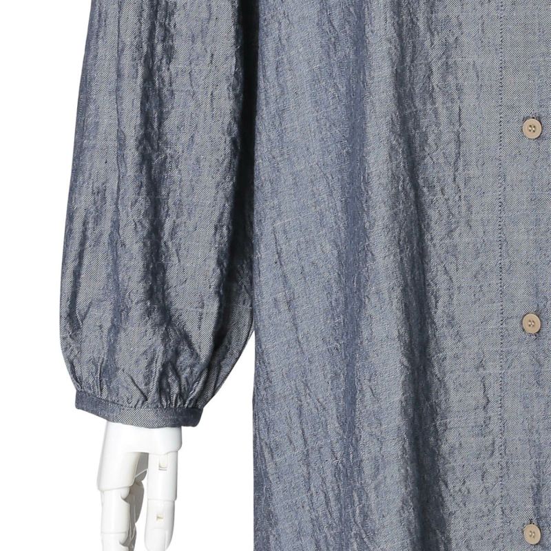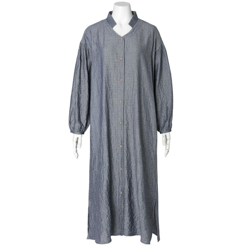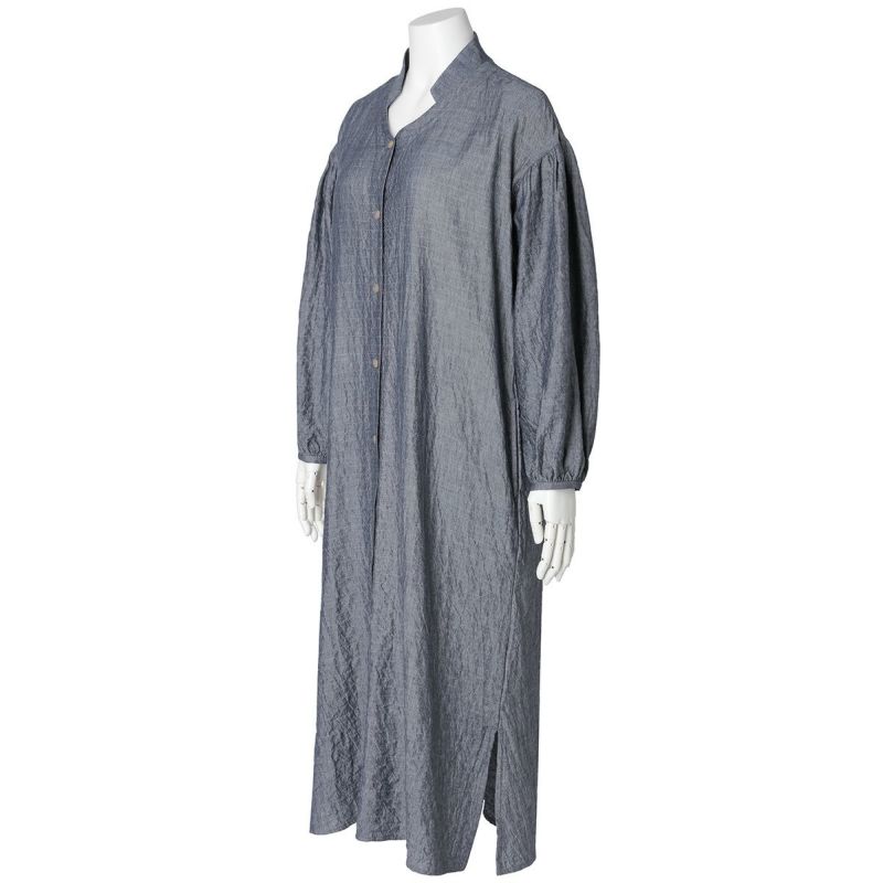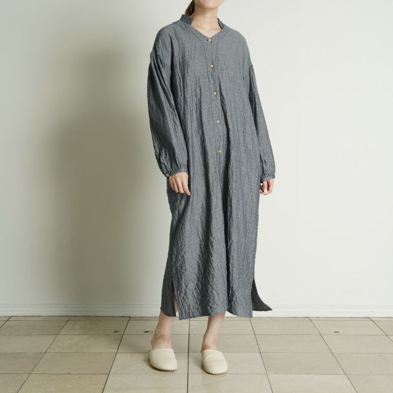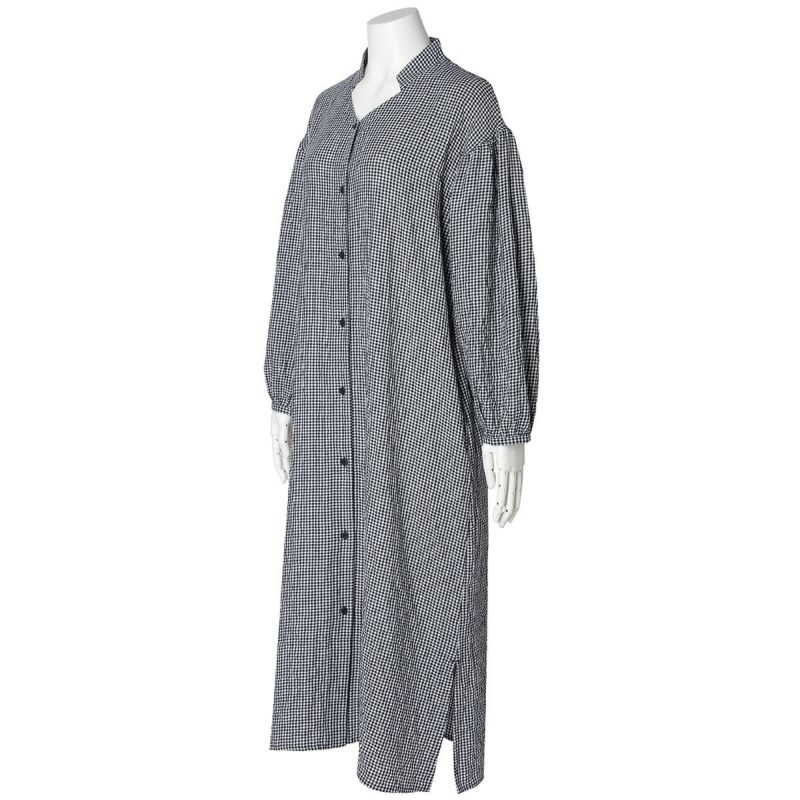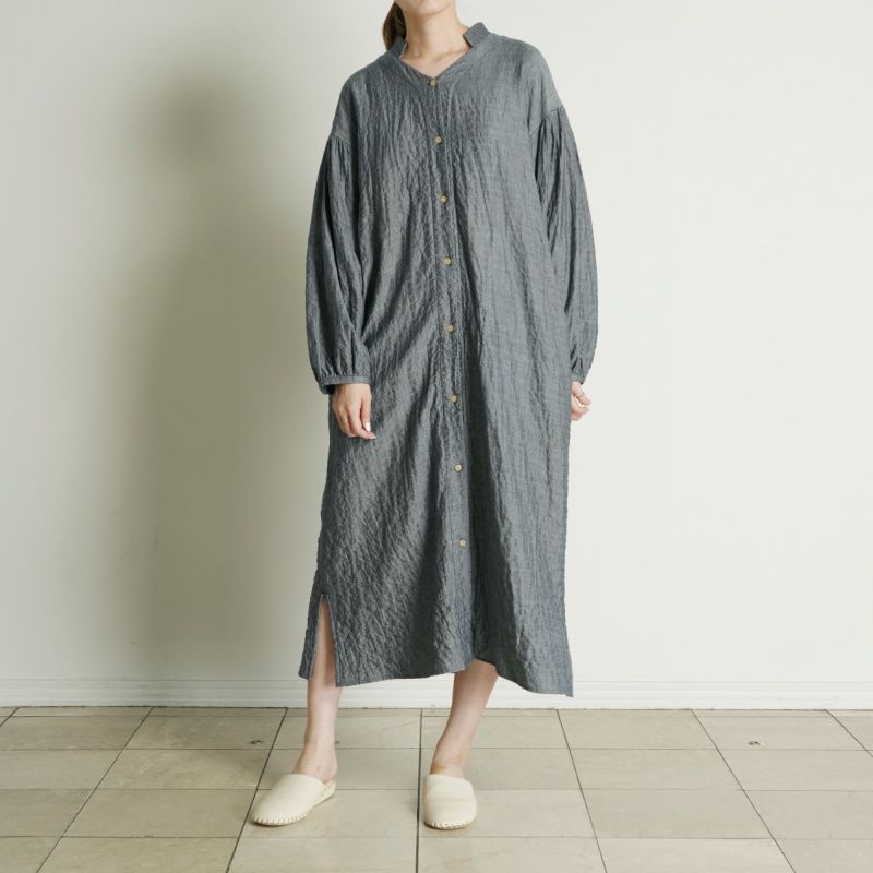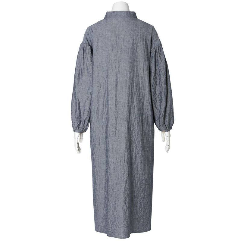 ギャザーが入ったふんわりとした袖が可愛らしいワンピース。裾部分にはスリットが入っているので、足さばきがよくさまざまなリラックスシーンで活躍。ポケットが付いているのも嬉しいポイント。ボタンを開けて、羽織としてもお召しいただけます。ワンマイルやトラベルなどにもおすすめ。