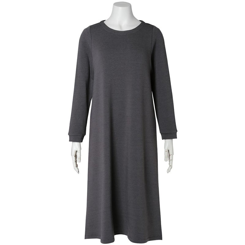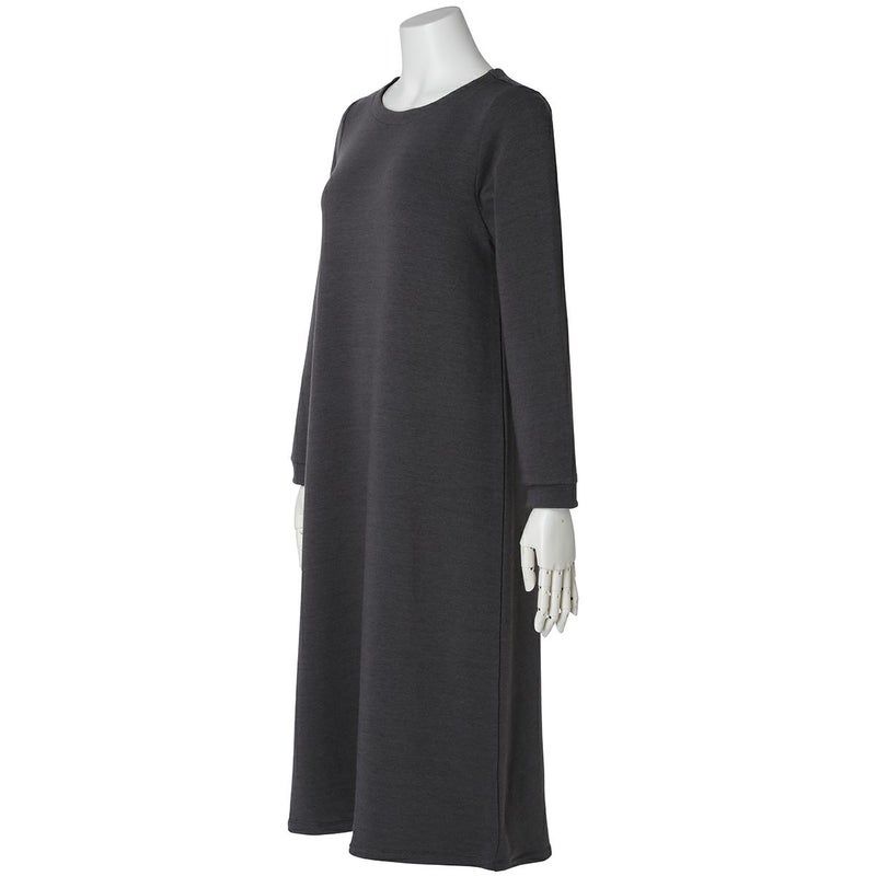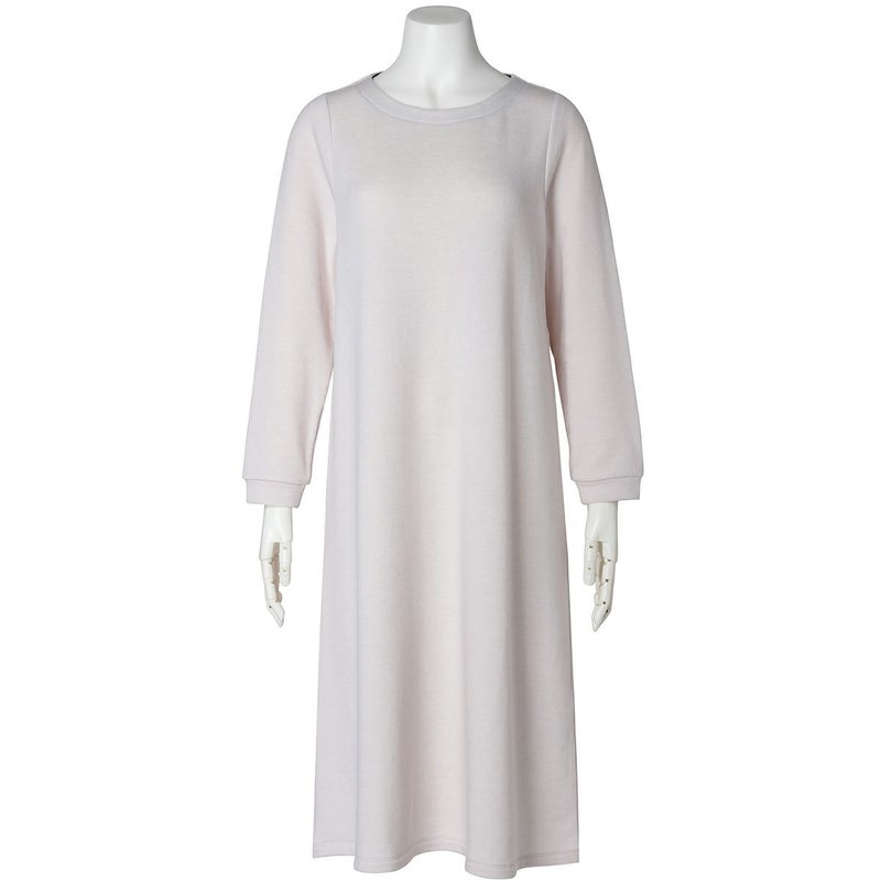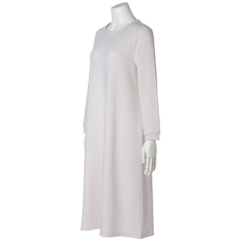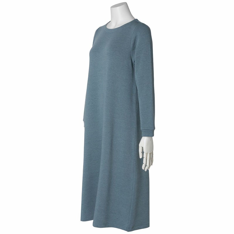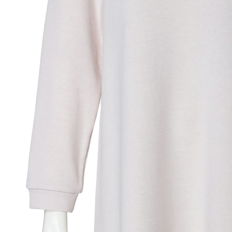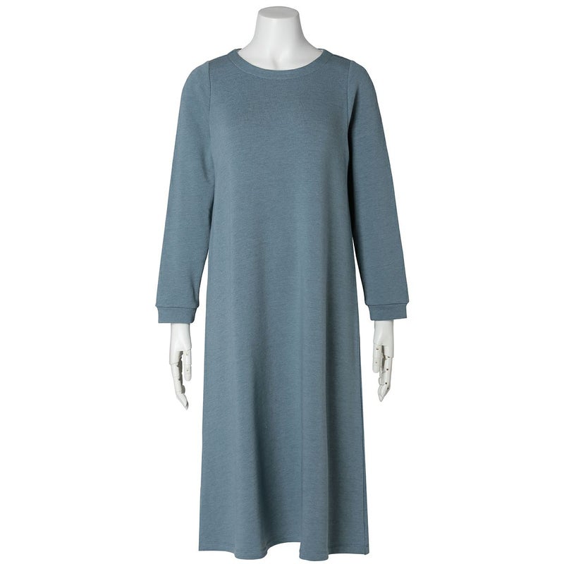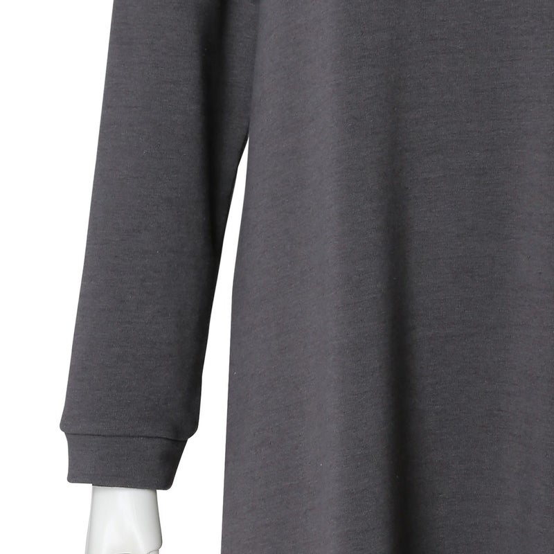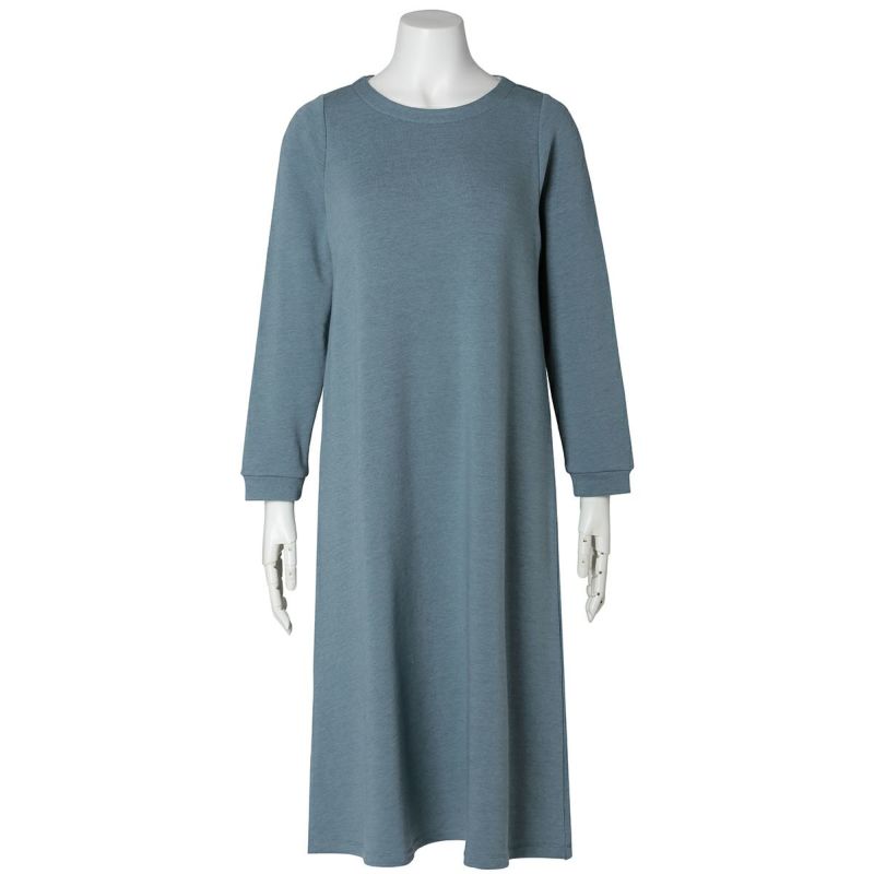 シンプルでベーシックなデザインの長袖ワンピース。リラックスタイムにはもちろん、ワンマイルウエアとしても活躍する便利な1枚。背ヨークに施した「Traveler with kidblue」の刺しゅうがアクセントになっています。