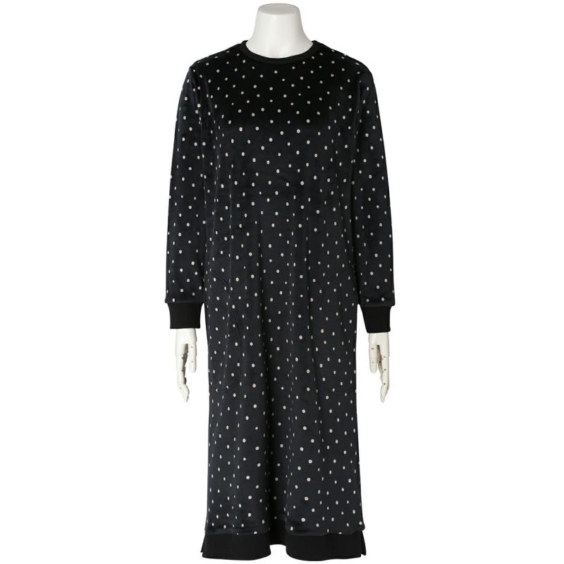 ベーシックな優しい着心地のワンピース。襟や袖口はリブ仕立てにしほどよくフィット。サイドにスリットを入れ足さばきや動きやすさにもこだわりました。ポケットが付いているのも嬉しいポイントです。