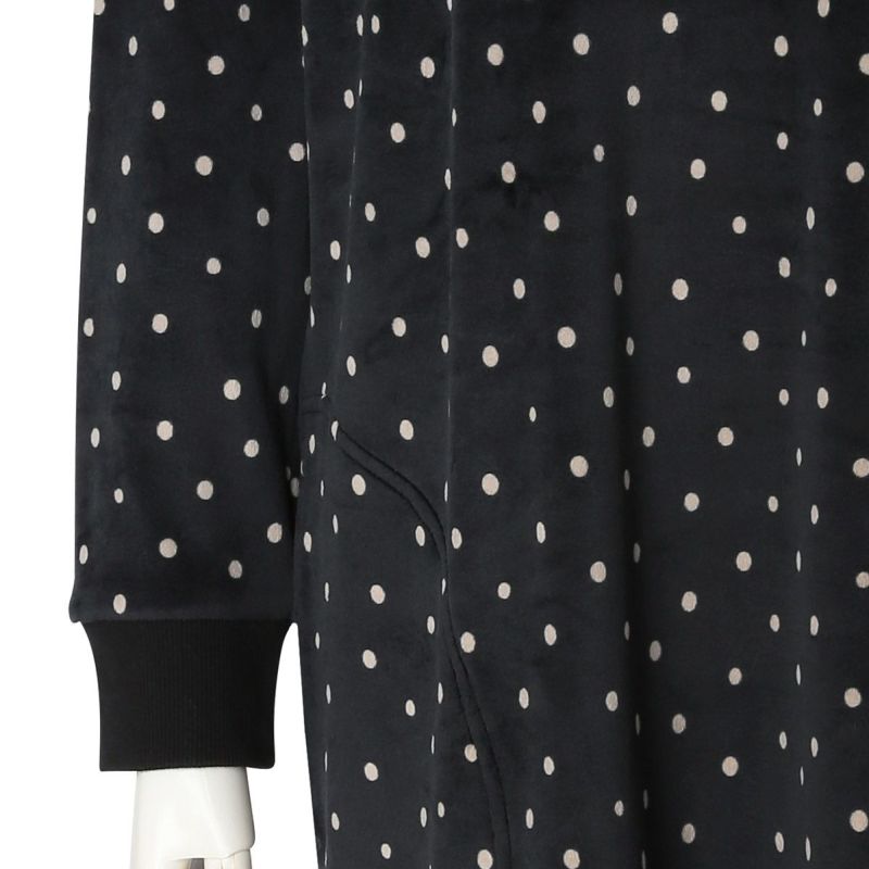 キッドブルーの冬の人気素材、ストレッチシャギーシリーズがドット柄で登場。滑らかで柔らかく着心地の良さが魅力。縦横に伸びるストレッチの効いた伸縮性の良さも特徴です。身生地にランダムドットを施したオリジナル素材。