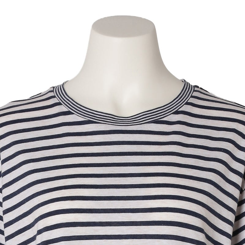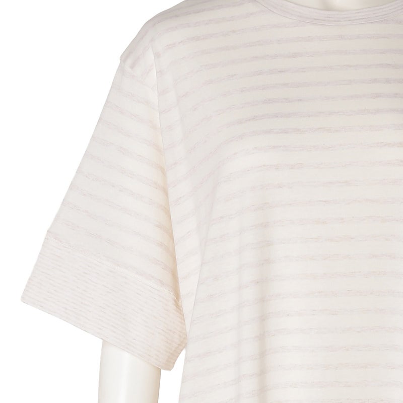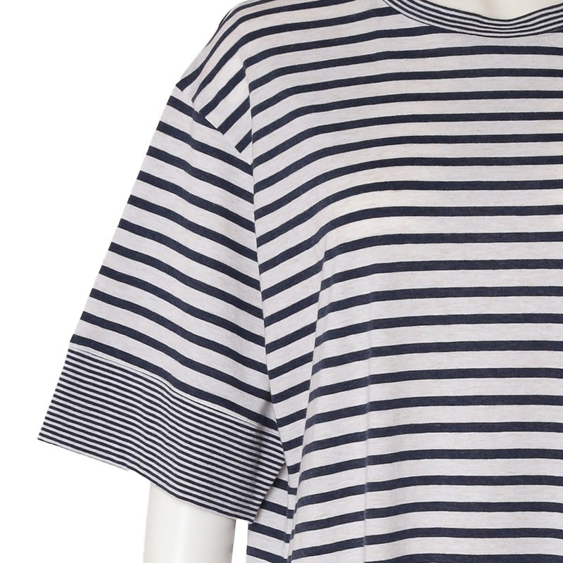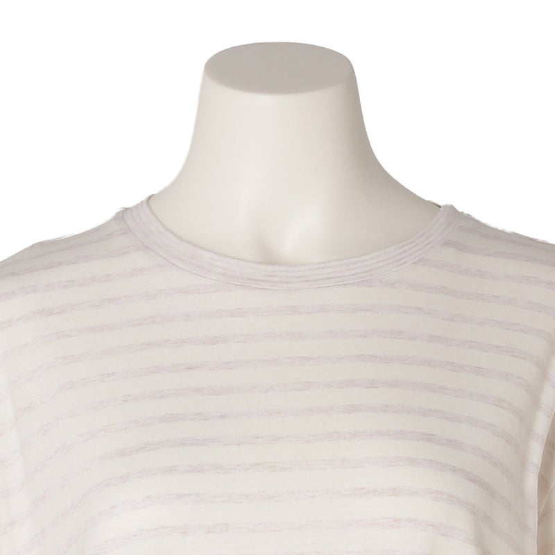 大小のピッチが異なるボーダーを組み合わせた、着まわしやすいシリーズ。撚りの異なる糸を交互に編み立てることで、薄く軽やかな着心地と、型崩れしにくい安定感を両立。ベーシックでコーディネートしやすい、上品なアイボリーとネイビーの2色展開です。