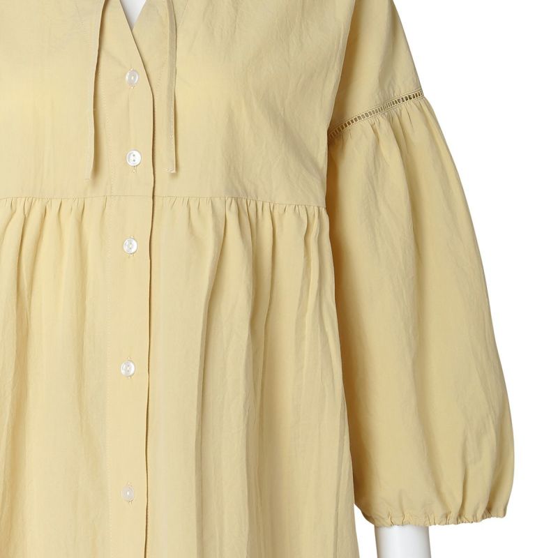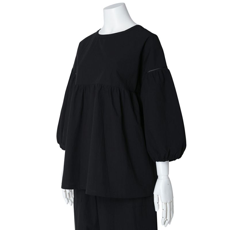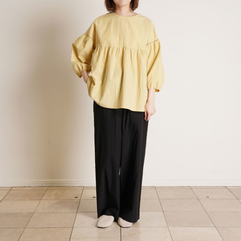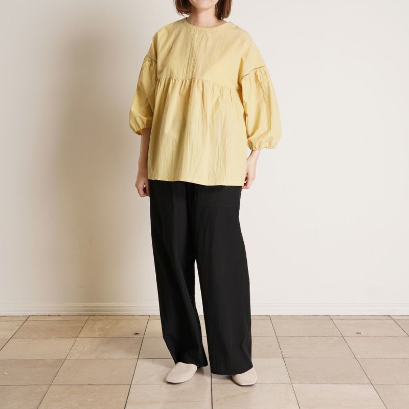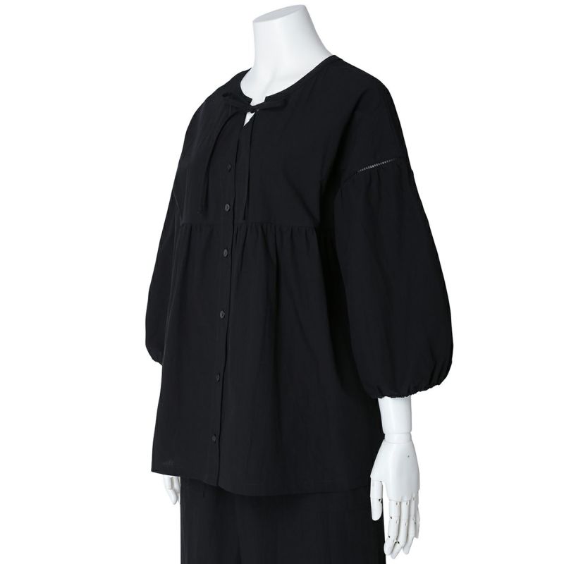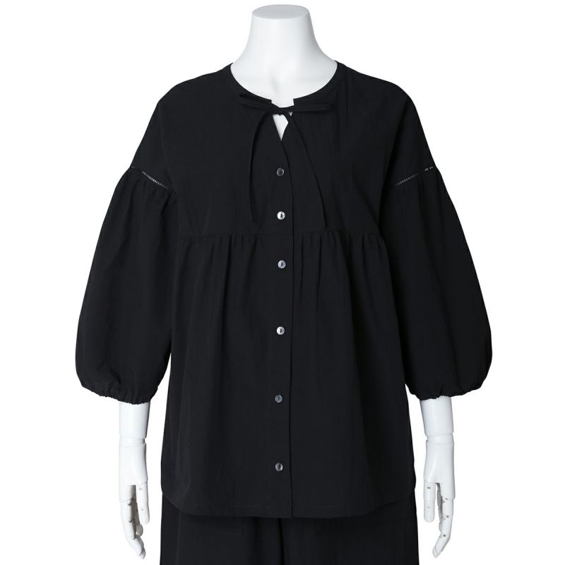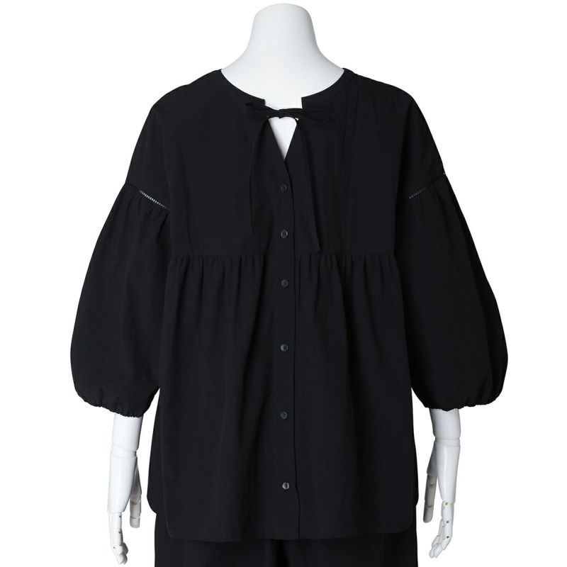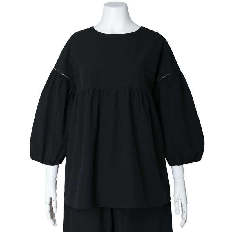 切り替えギャザーでゆったりしたシルエットのトップス。インゴムのややパフスリーブの袖が腕を華奢に見せます。ドロップショルダーの袖をハシゴレースでつなぎフェミニンなポイントに。前後で着られる2WAY仕様でデザイン性も高く、さまざまな着こなしを楽しめます。同素材のボトムス(25ワッシャーコットン フルレングスボトムス)や25LIBERTYプリントショート丈ボトムス(KOBP145)フルレングスボトムス(KOBP545)とのコーディネートがおすすめ。