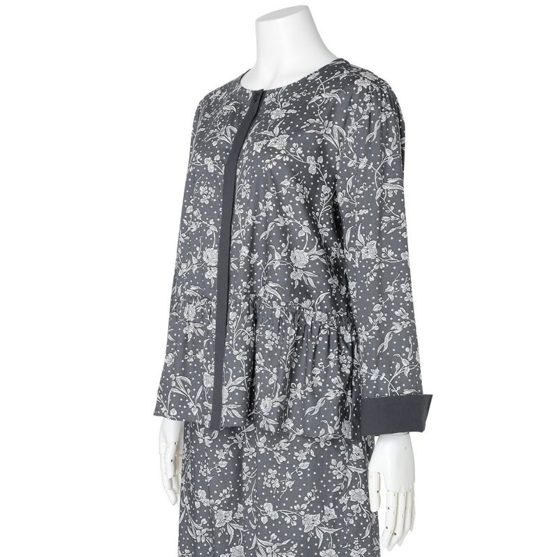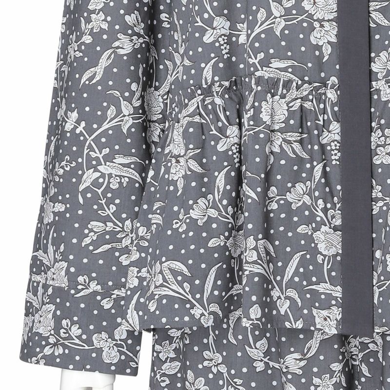 ベージュは「ケイティ・アンド・ミリー」風になびくような小花柄がかわいらしい。ネービーは「パトリック・ゴードン」夏の庭園に咲き誇る花々。単色の花で大人の華やかさを演出します。チャコールは「マロリー」。モノトーンのドットに花が描かれ甘すぎずシックに着こなせる。