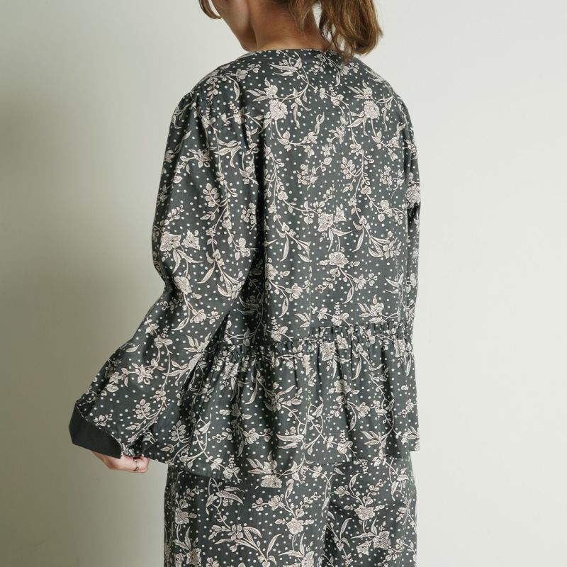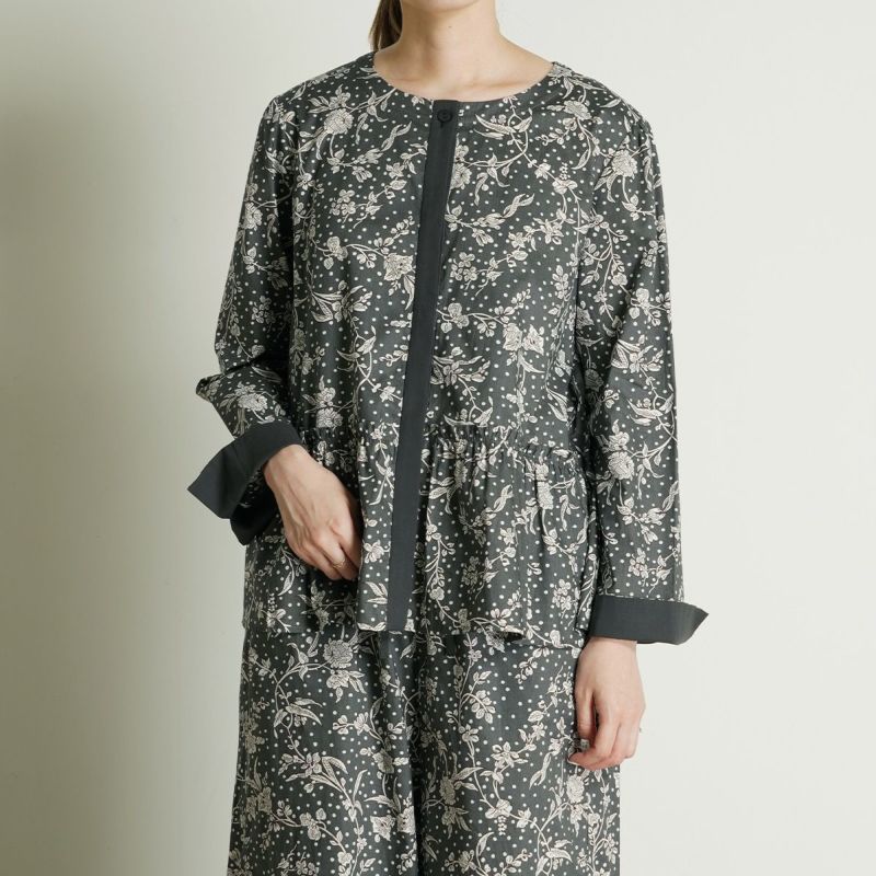 ボタンを開ければ羽織としてもお召しいただけ夏から秋まで活躍。袖の折り返し部分には別布を施しており、様々な表情が楽しめる。