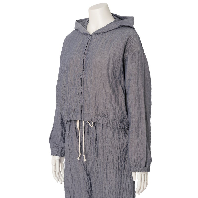 バランスよく着こなせるトレンド感のあるショート丈長袖シップパーカー。袖はゴム入りで愛らしさとまくりやすさを両立。冷房対策にもおすすめのアイテムです。