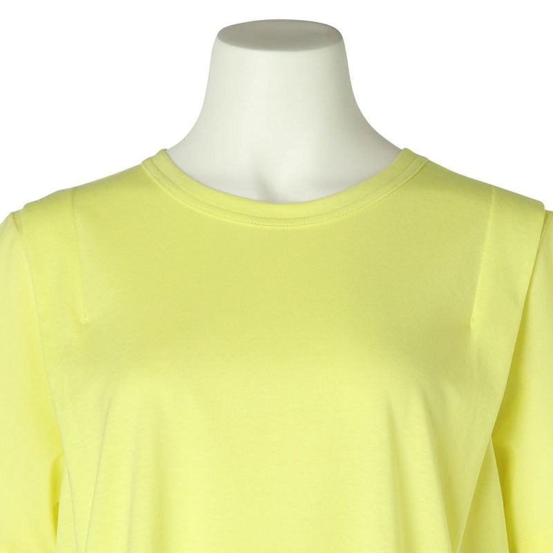 半袖トップスは、袖を布帛に切り替えた異素材組み合わせデザイン。ボトムを選ばずに着用でき、ワンマイルウェアにおすすめ。