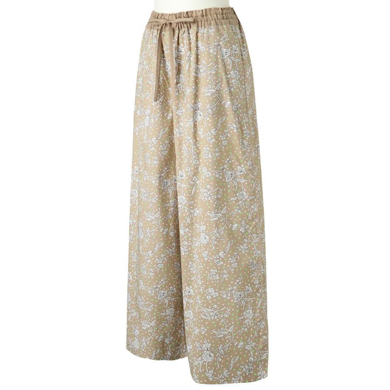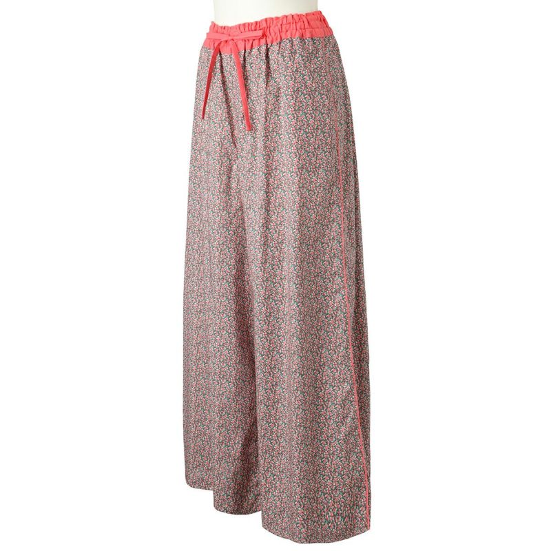 フルレングスボトムスは、ウエストを配色で切り替えたデザイン。サイドにあしらったパイピングがすっきり見えるアクセントに。ゆったり着られるセミワイドシルエット。肌離れもよくさらっと着こなせる。両サイドポケット付き。シンプルなトップスのアクセントや、チュニックやワンピースと合わせてもおすすめです。