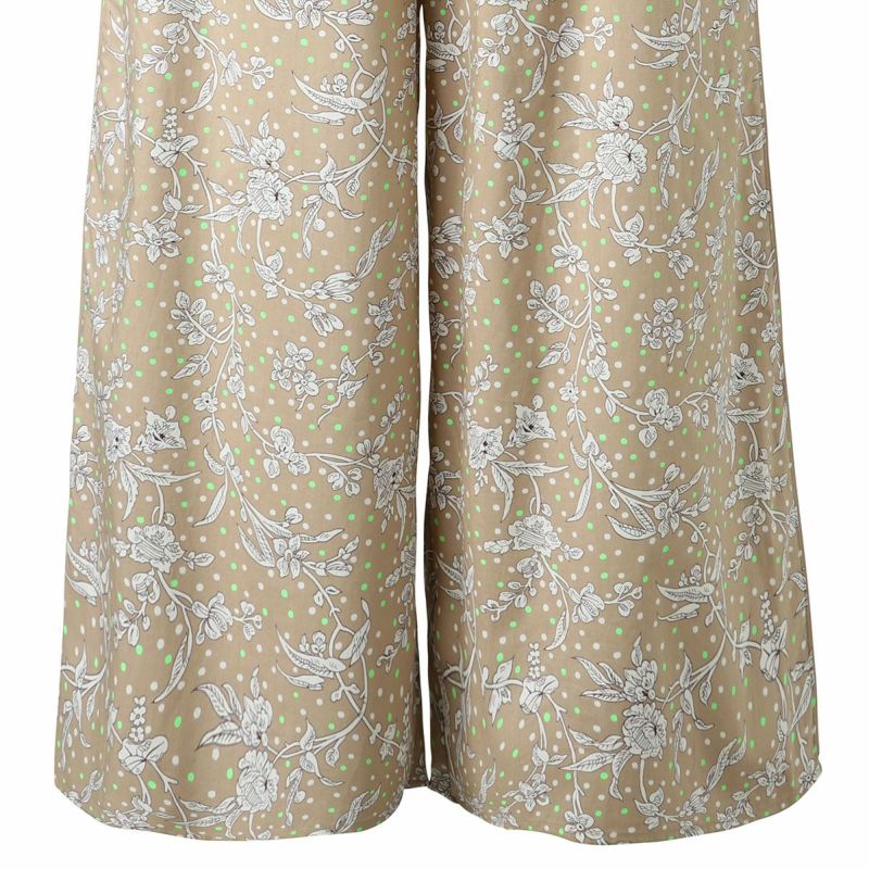 - LIBERTYのタナローン生地は透けにくいのでベージュでも1枚で涼しく着用できるのが嬉しい。ナチュラルカラーに蛍光のグリーンドットが映えるプリントでシンプルなコーディネートにもお勧め。