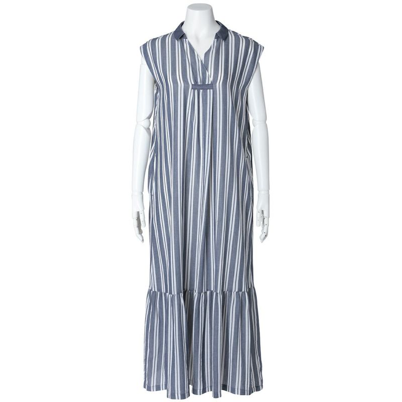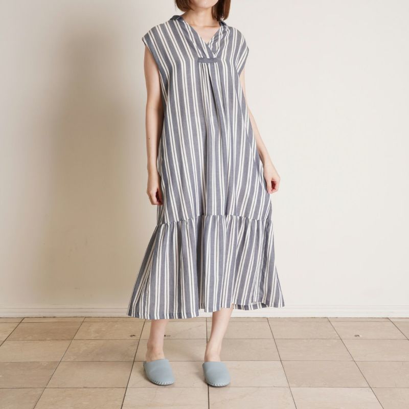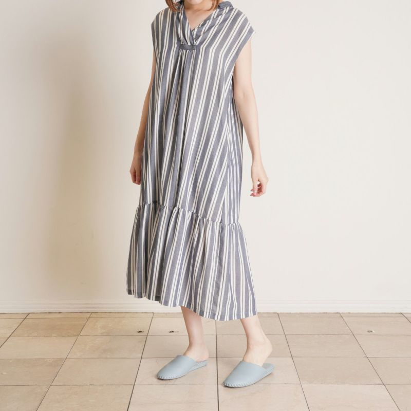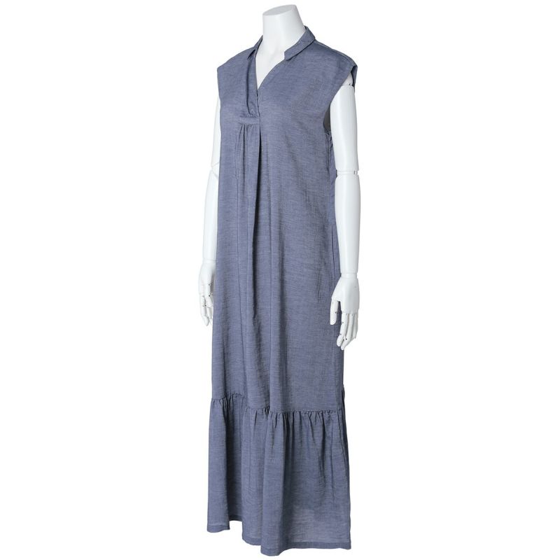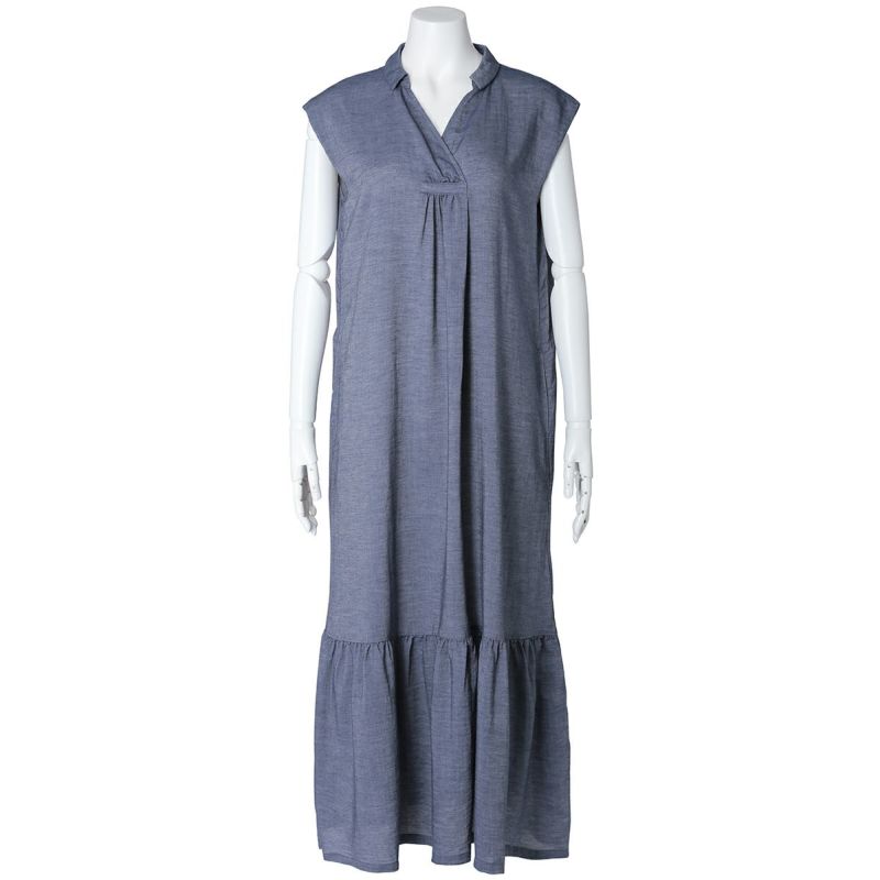 ギャザーを入れた裾の切り替えがエレガントなロングワンピース。首元はすっきりとしたVネック。胸元に寄せたギャザーがデザインポイント◎やや肩先まで隠すフレンチスリーブが二の腕を細見せ。普段使いもリゾートにもぴったりな夏におすすめの一着。