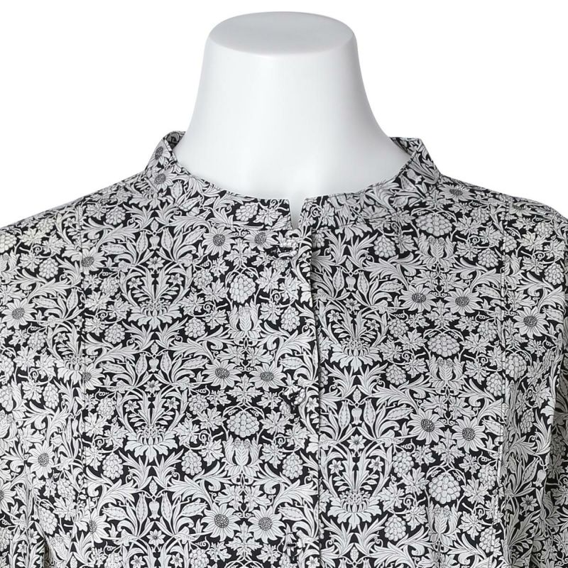 シルクのような程よい光沢感としなやかな肌触りのリバティ社が開発したローン地を使用。軽く、洗濯後もシワが気になりにくい素材。今年は印象のことなる3種の柄をセレクト。流れるような優雅なデザインが有機的につながったアイボリー、優しい色合いの小花が彩るサックス、モノクロのひまわり・ブドウが連なり大人が華やかに着こなせるブラック。