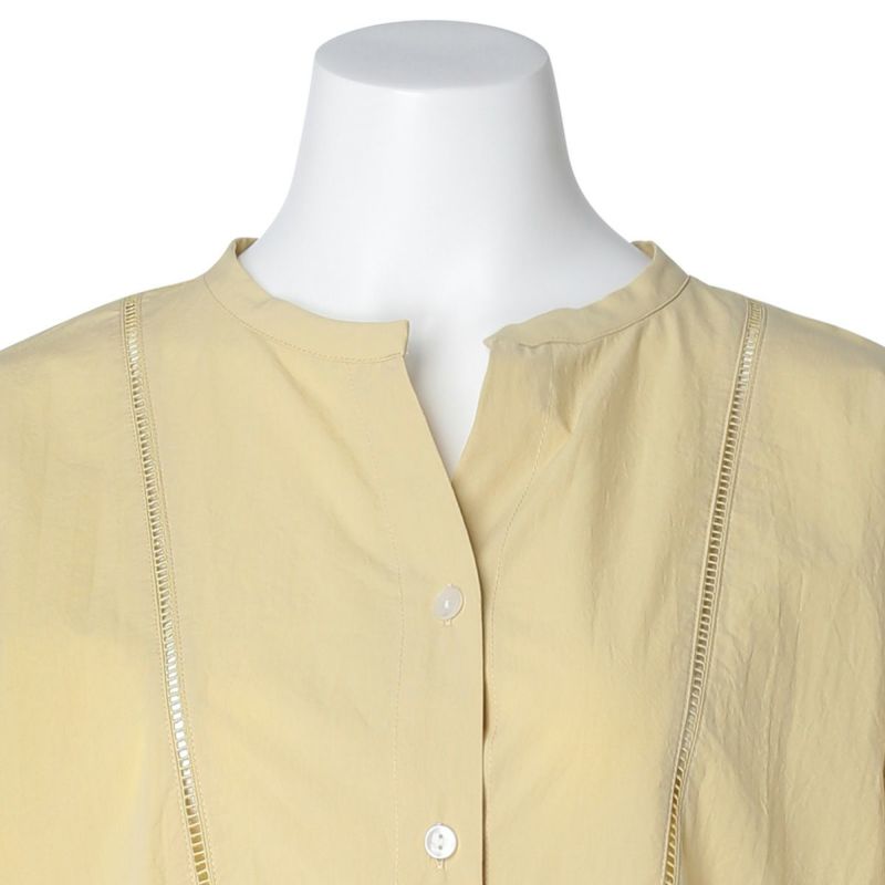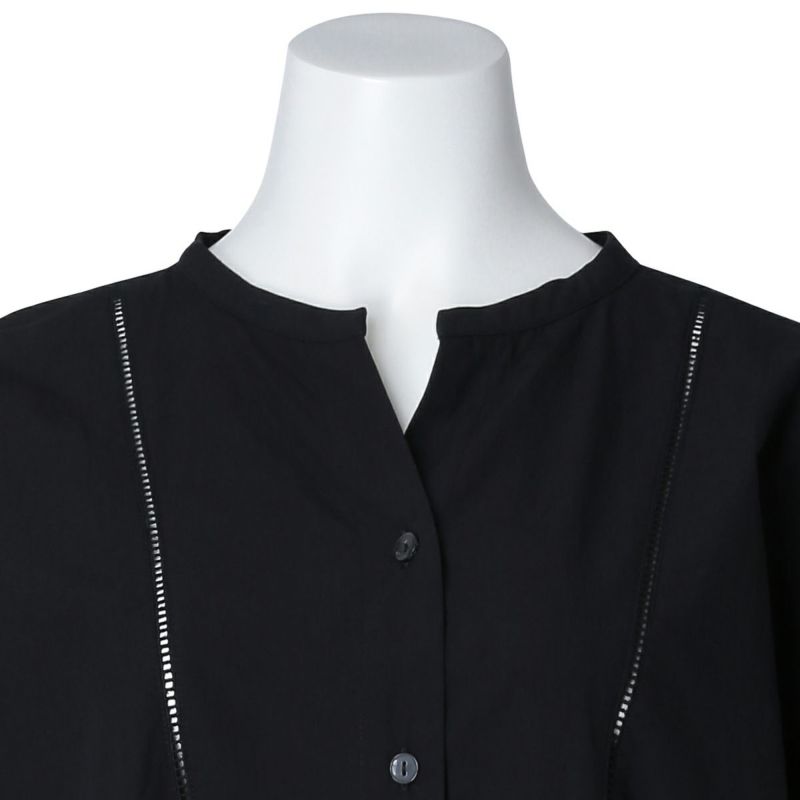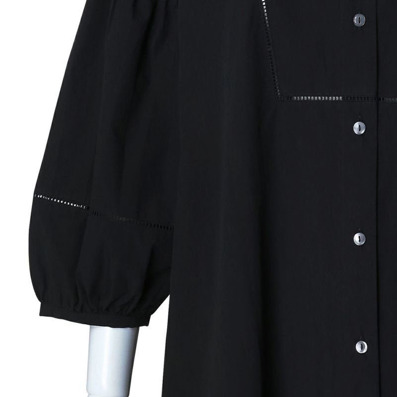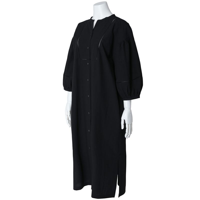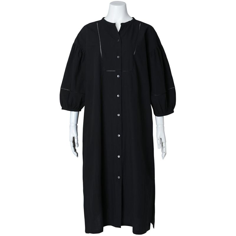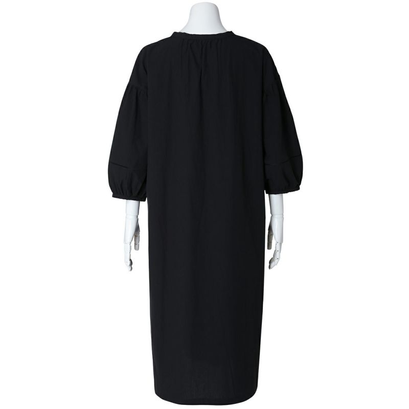 8分袖ワンピースは、ふんわりと広がるパフスリーブが魅力の一枚。アクセントとなるヨーク切り替えと袖口のハシゴレースがフェミニンなポイント。首元はすっきり見せるキーネック。同素材のボトム(25ワッシャーコットンフルレングスボトムスKOBP546)や 25LIBERTYプリントのボトム(KOBP545)と合わせたコーディネートや、ボタンを開けて羽織としての着こなしもおすすめです◎