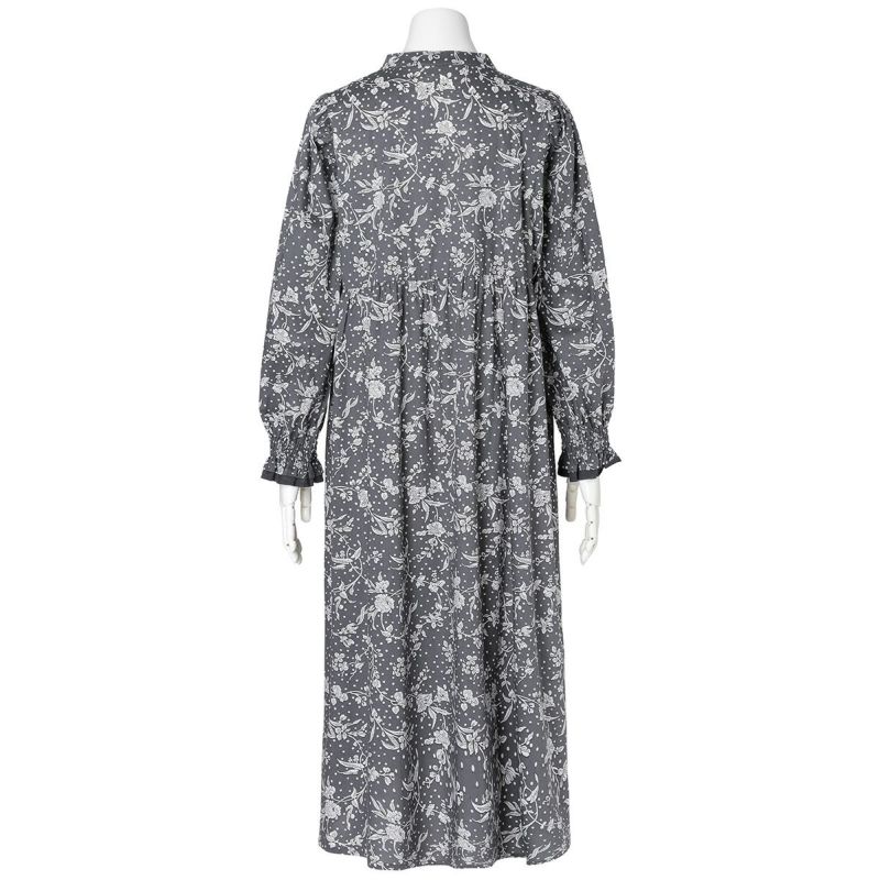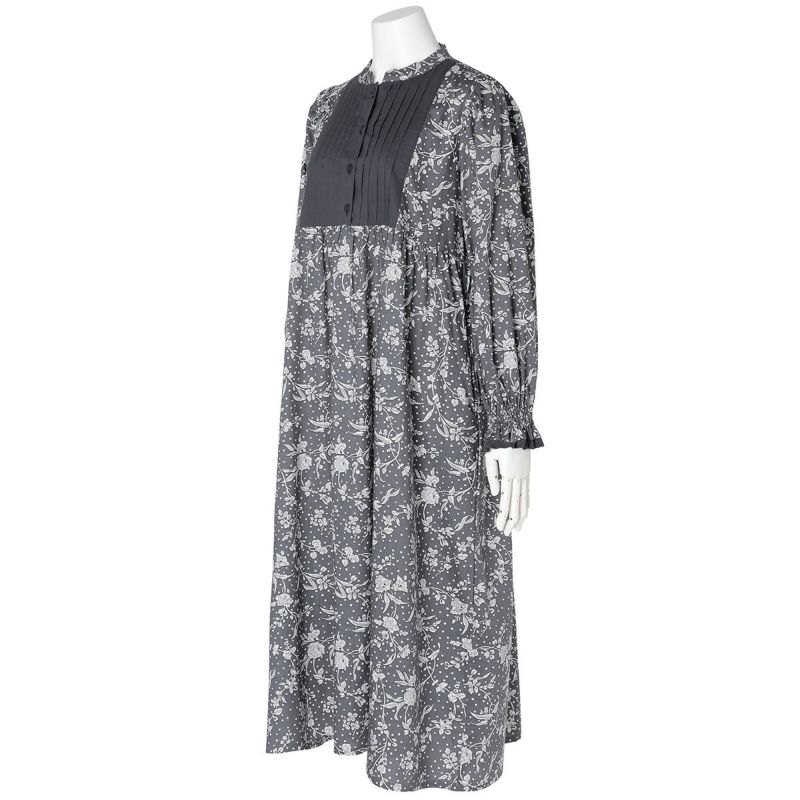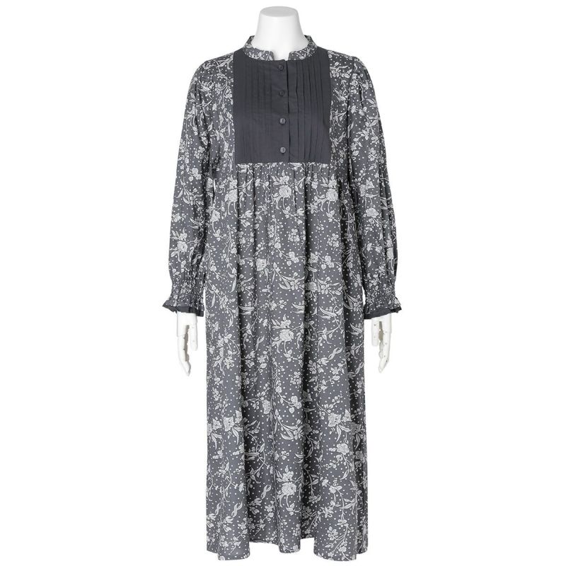 ベージュは「ケイティ・アンド・ミリー」風になびくような小花柄がかわいらしい。ネービーは「パトリック・ゴードン」夏の庭園に咲き誇る花々。単色の花で大人の華やかさを演出します。チャコールは「マロリー」。モノトーンのドットに花が描かれ甘すぎずシックに着こなせる。