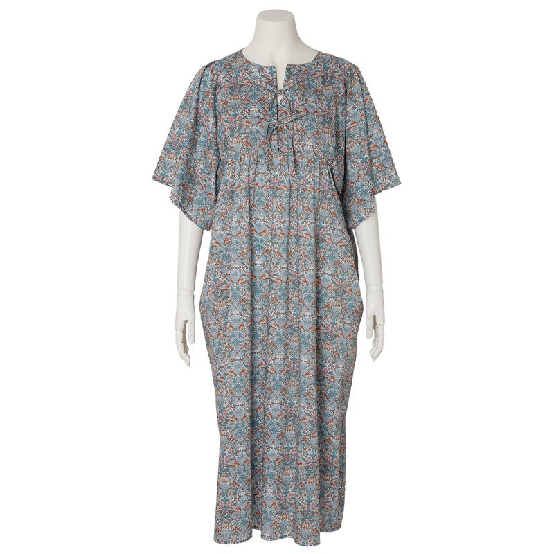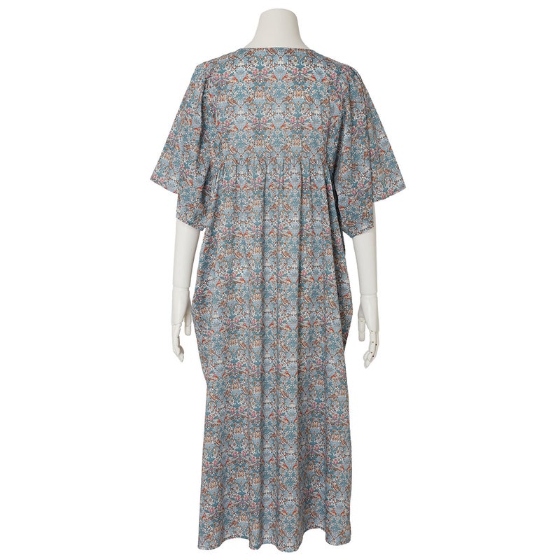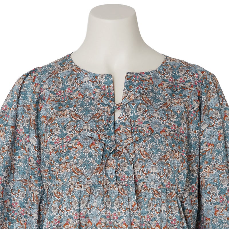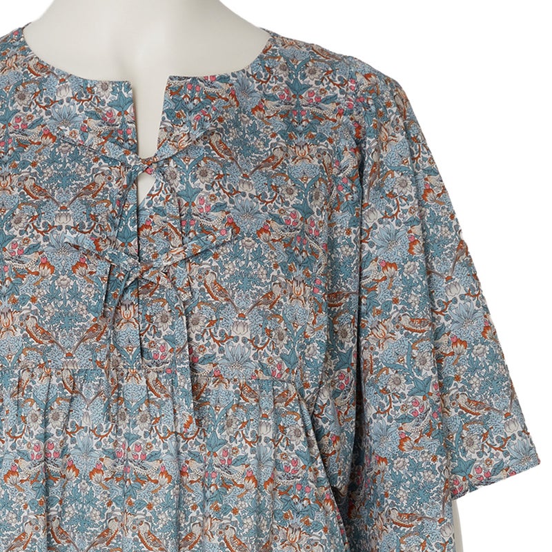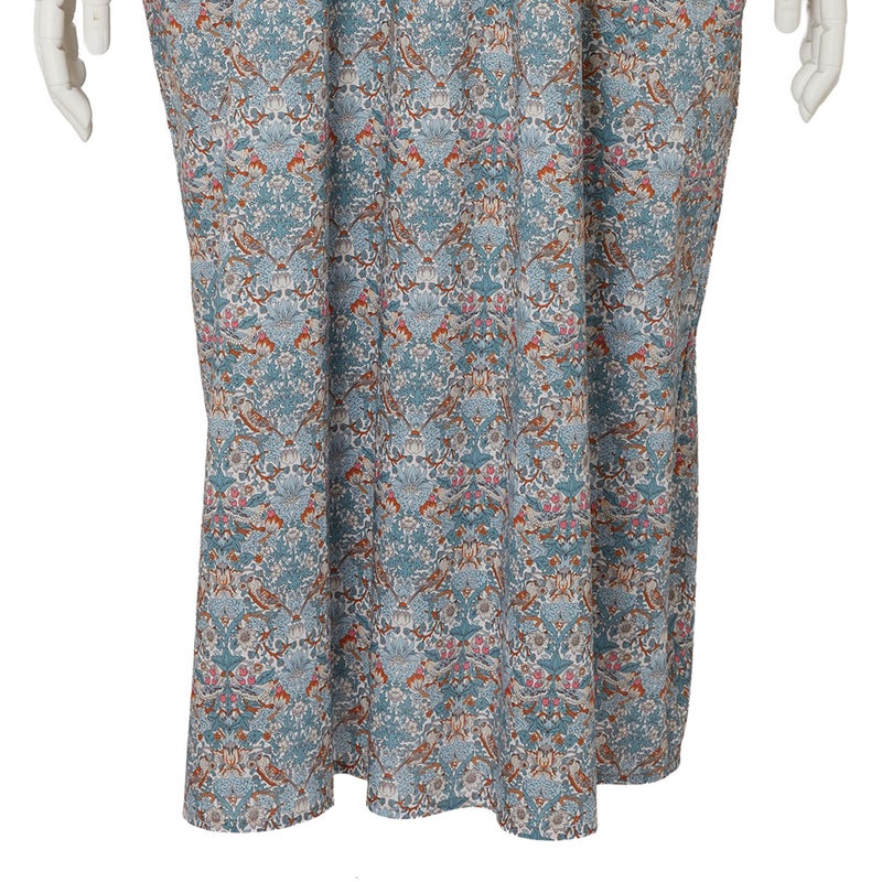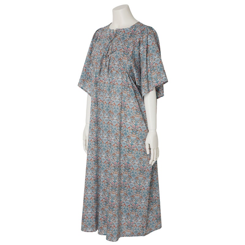 マルチは「ジョアンナ・ルイーズ」隙間なく描かれたルーズなアウトラインのアザミ、ナデシコ、バラ、そしてアフリカホウセンカが魅力的な牧草地のようなボタニカルプリント、ブラックは「マロリー」モノトーンのドットに東洋の花が描かれ甘すぎずシックに着こなせる。サックスは「ストロベリー・シーフ・スプリング」ウィリアム・モリスによる「いちご泥棒」と名付けた鳥と苺のモチーフにストーリーを感じる柄。