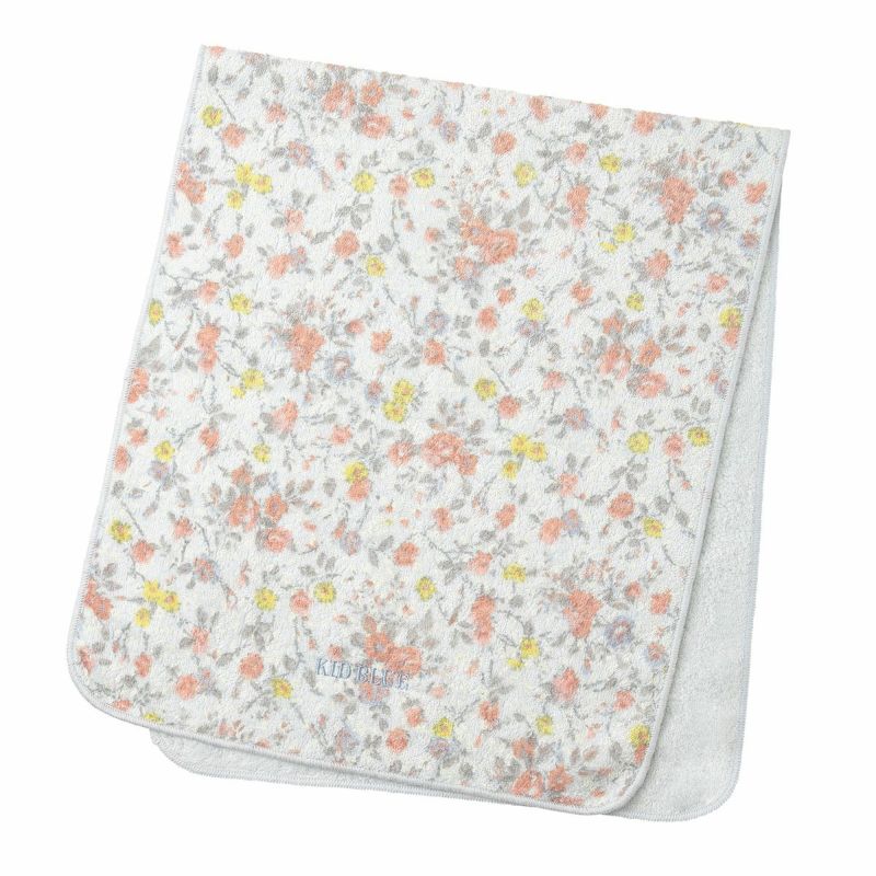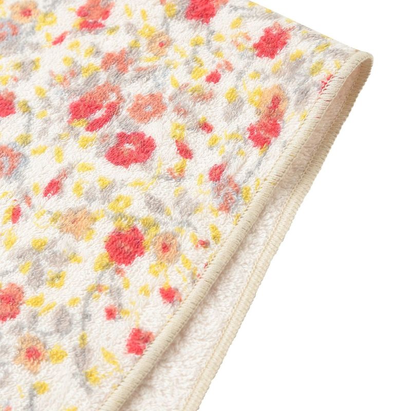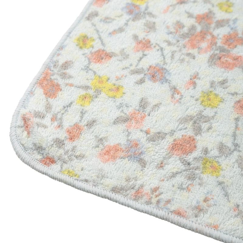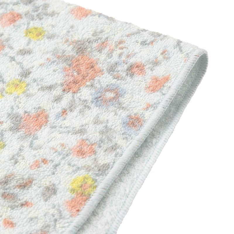端に丁寧に身生地同色のメローロックを施し柄を活かした仕様にしたフェイスタオル。同シリーズのハンカチ(KGAU144)やバスタオル(KGAU344)と合わせてギフトにもおすすめ。