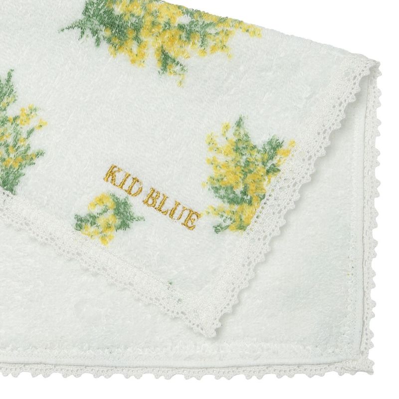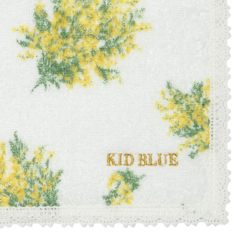 華やかで品のあるミモザブーケ柄がプリントされたタオルシリーズ。綿100%でふんわりと心地いい肌触りが特徴です。KID BLUEのロゴ刺繍入り。爽やかな印象の2色展開。