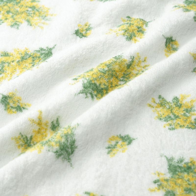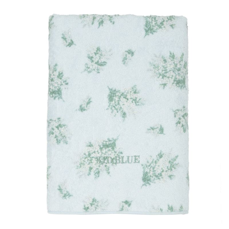 華やかで品のあるミモザブーケ柄がプリントされたタオルシリーズ。綿100%でふんわりと心地いい肌触りが特徴です。KID BLUEのロゴ刺繍入り。爽やかな印象の2色展開。