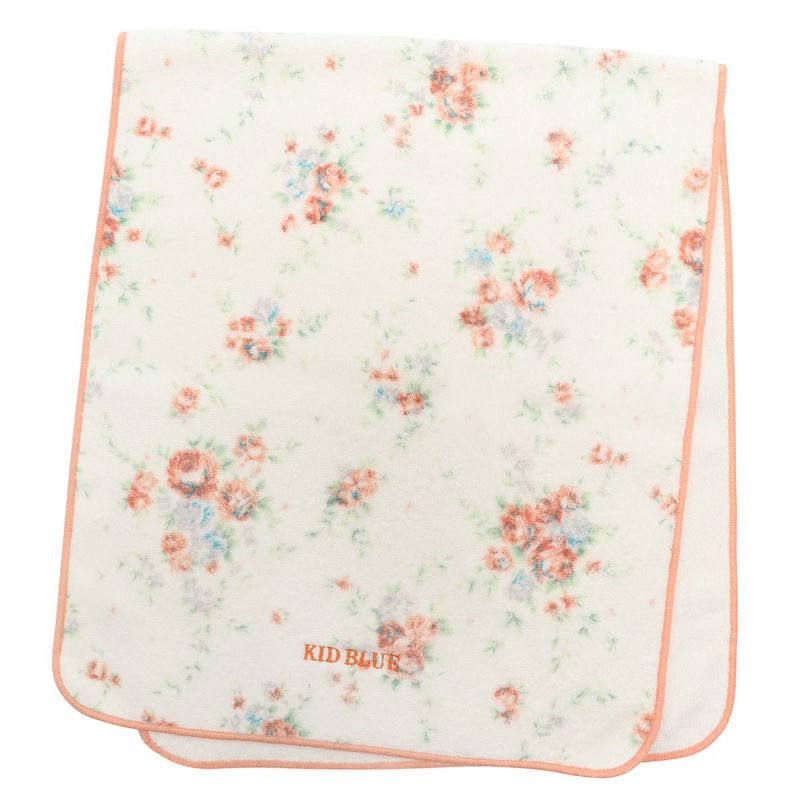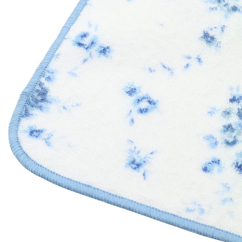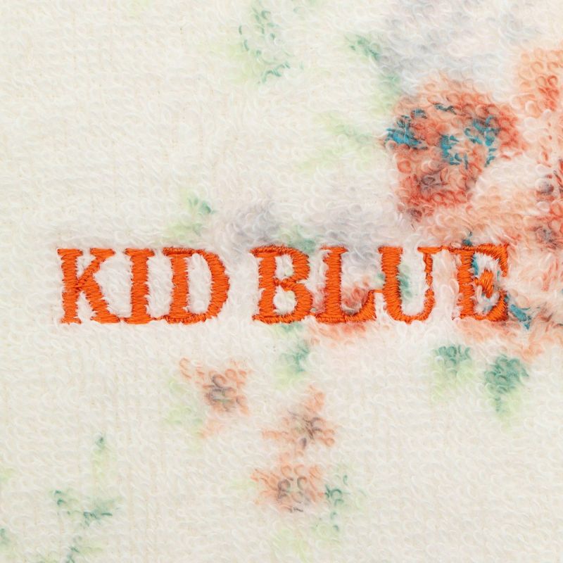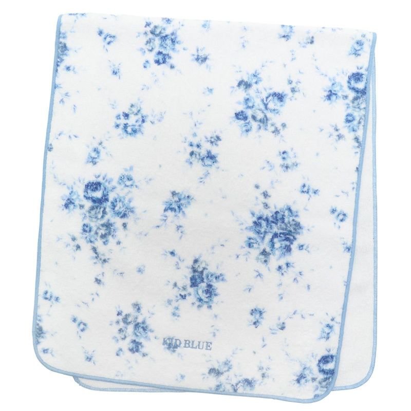 配色メロウで縁取ったアウトラインがポイントのフェイスタオル。玄関やキッチンをぐっと華やかに見せます。キッドブルーらしいフラワープリントはギフトにもおすすめです。