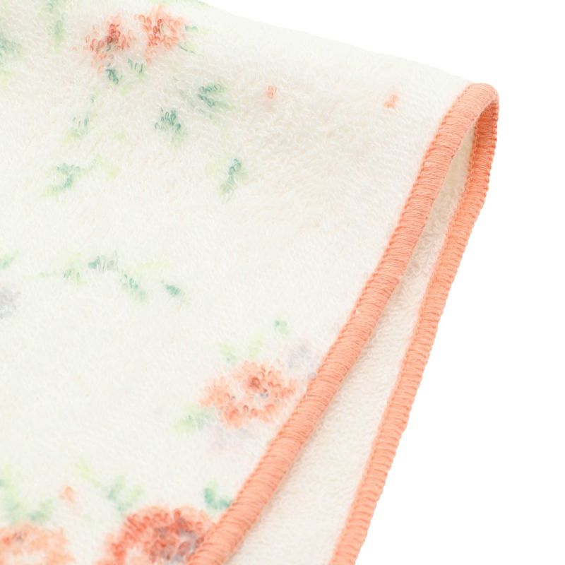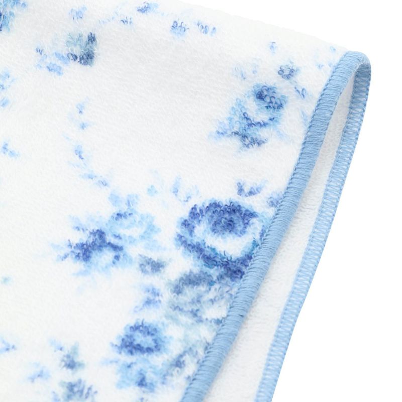 インナーやパジャマと同じ繊細で華やかなブラッサム柄をプリントした今治産タオル。吸水性の高いふっくらとしたパイル生地を使用したタオルシリーズ。