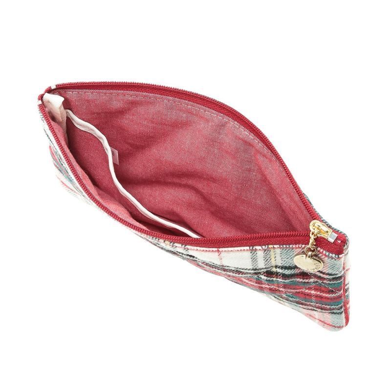 新型ポーチは、コンパクトなサイズ感でかさばらず持ち運びにも便利です。内側には仕切りのポケット付きで、収納も取り出しもしやすい。コスメポーチとしてデイリー使いにおすすめ。同柄の「24ネルタータンチェックシリーズ」のナイトウエアシリーズと共にギフトにもおすすめです。