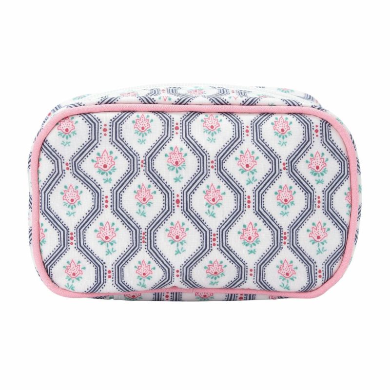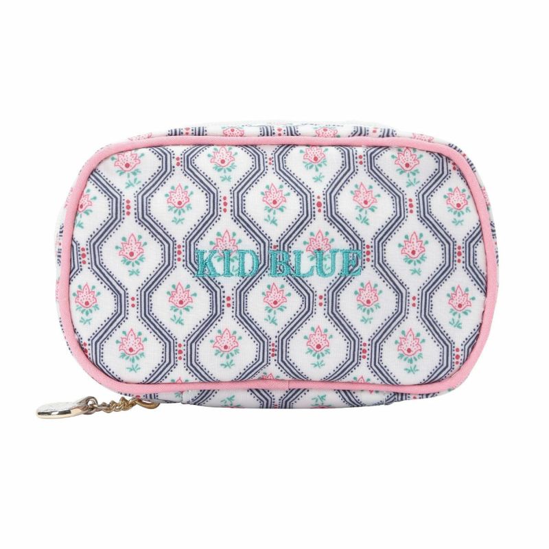 LIBERTYプリントをラミネート加工した自立型ポーチ。コンパクトなタイプでリップや薬など細かなもの入れに。片側内ポケット付きでチャック部分は大きく開くので取り出しやすい。ピアスやネックレスなどを収納するジュエリーケースとしてもおすすめです。