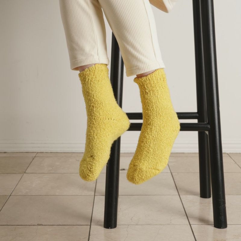もこもことした生地がシーズンムードたっぷりなキッドブルーの人気ソックス。内側がループ状になっており、空気を含んでふんわりあたたかな履き心地。今年は柔らかなピンクとイエローの2色展開。