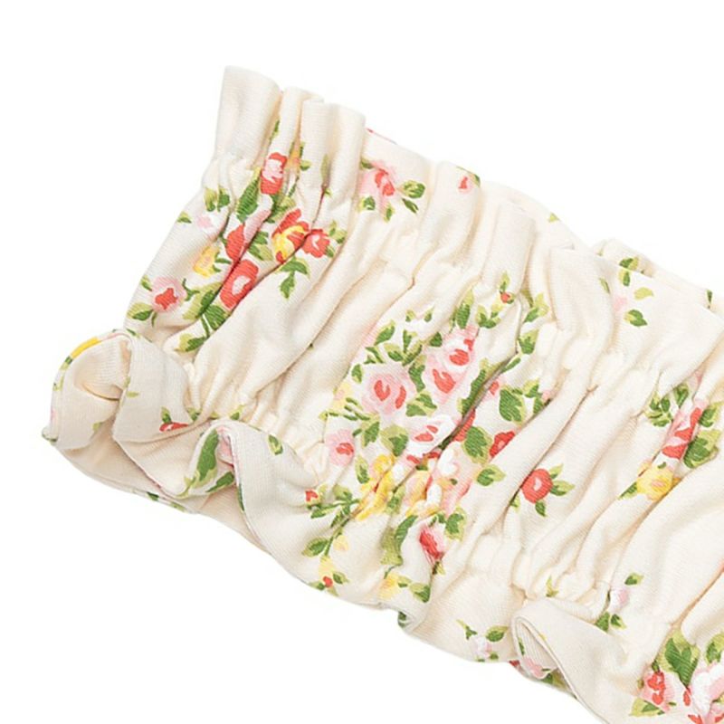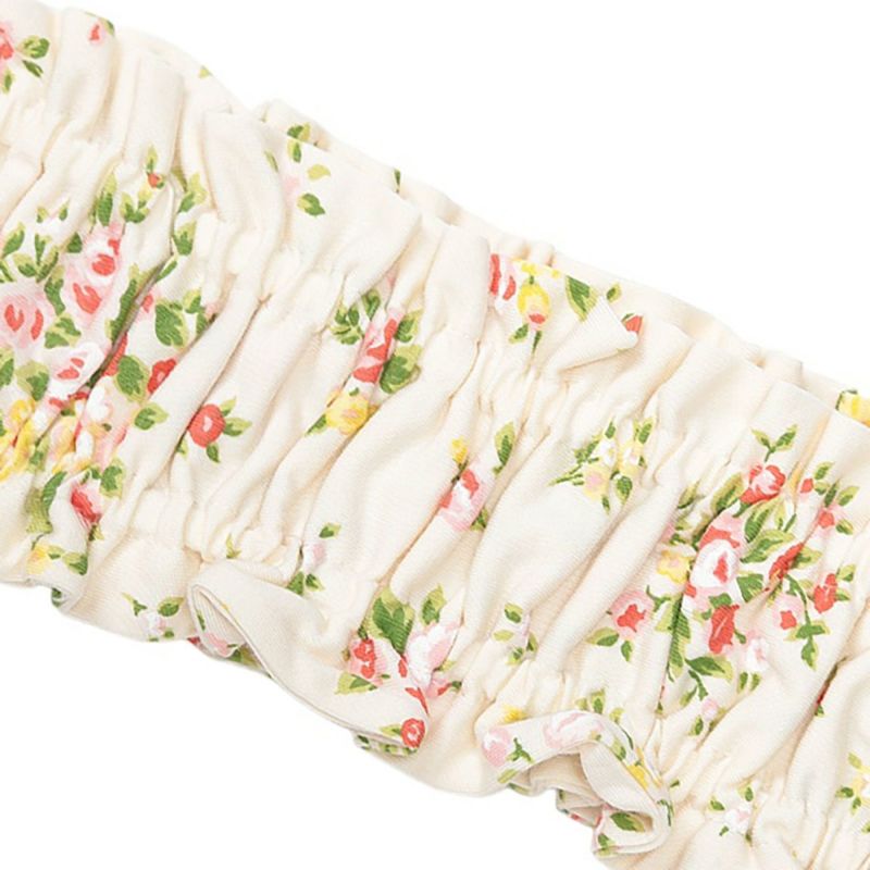 細やかなバラのブーケ総柄がフェミニンなシリーズ。キッドブルーブランド45周年を迎え、原点回帰をテーマに2001年の人気柄を復刻。花がかわいらしい復刻カラーのアイボリーと、少し大人の雰囲気の新色ネイビーの2色展開。