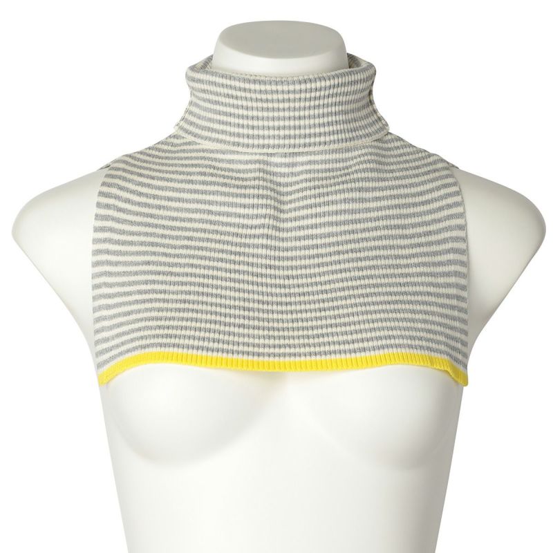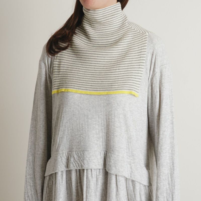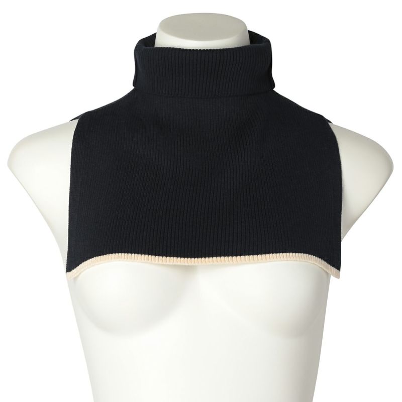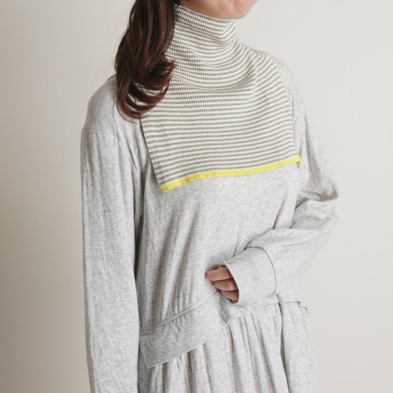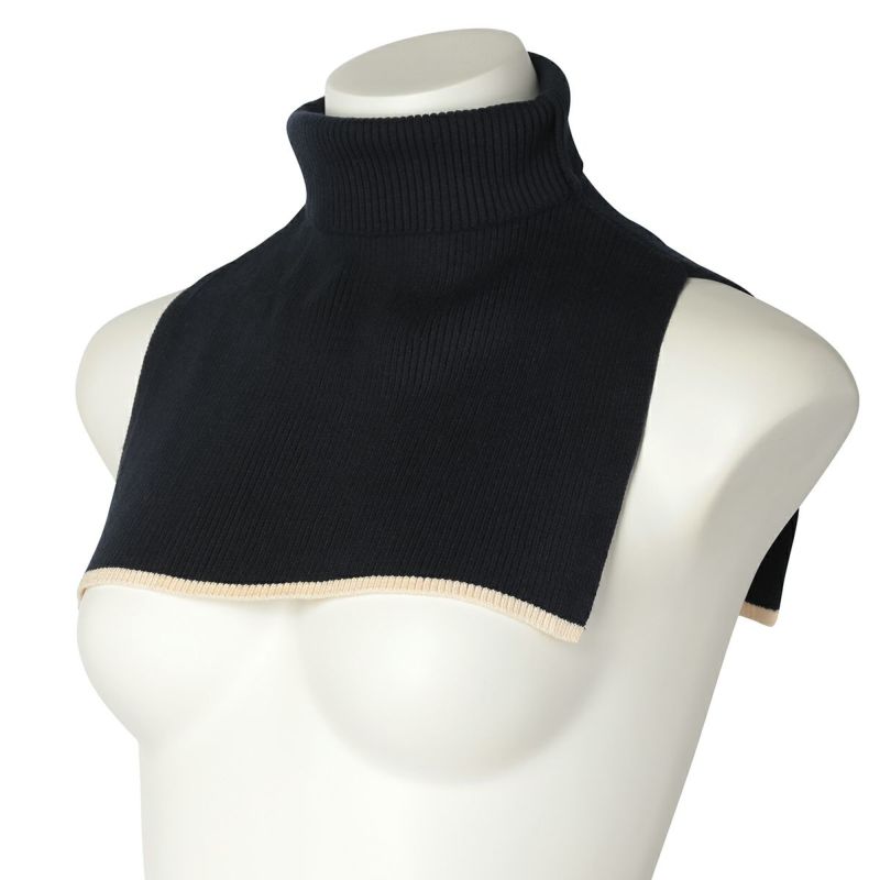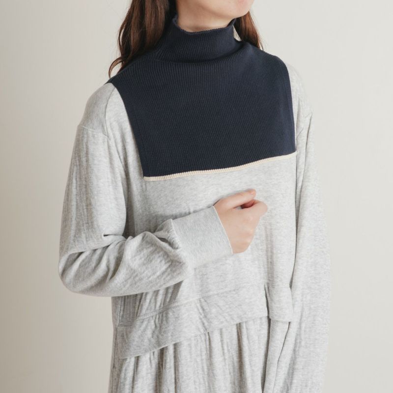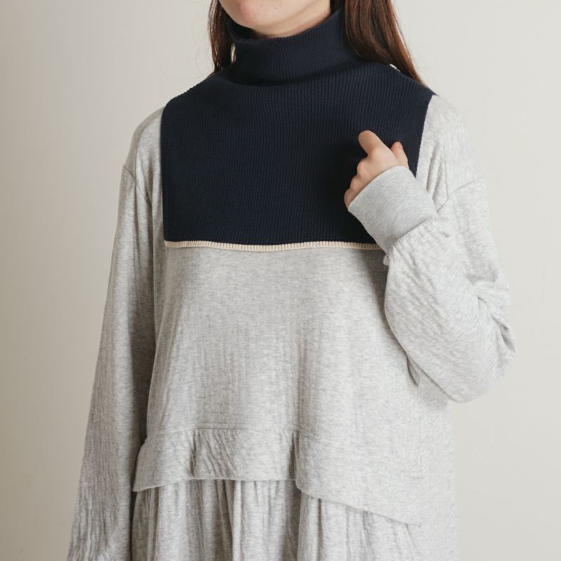 首から肩の防寒におすすめなネックウォーマー。首にくっつきすぎないソフトなオフタートルデザインです。端をフラットに仕上げインに入れてもごろつきにくく仕立てました。
