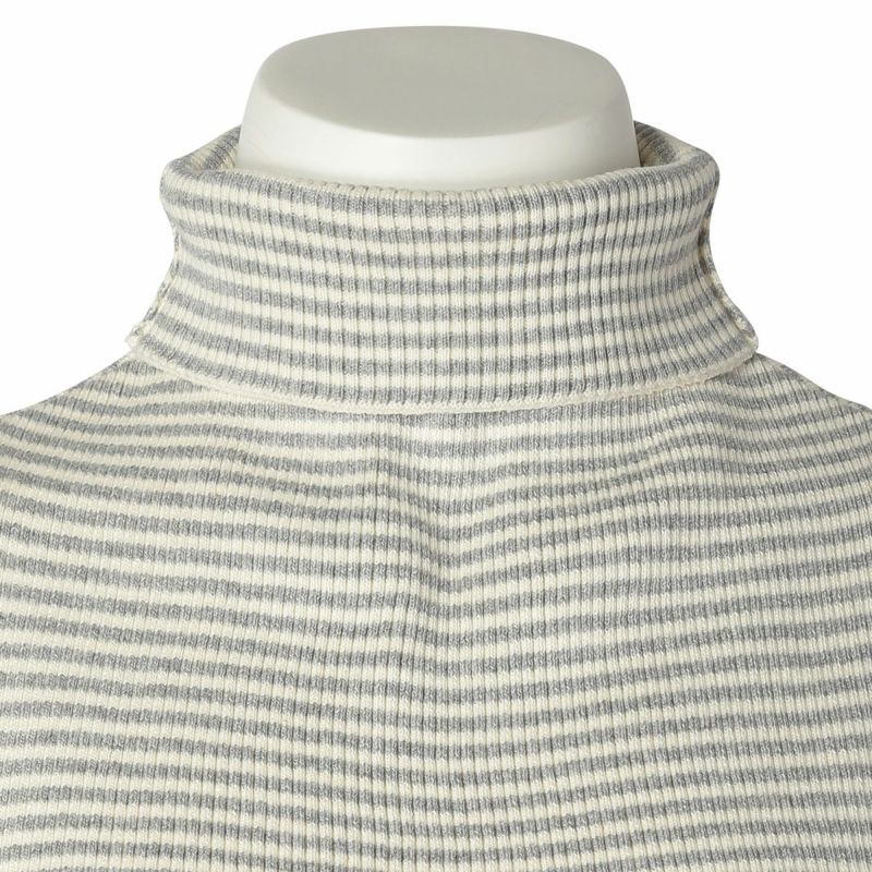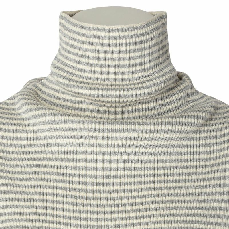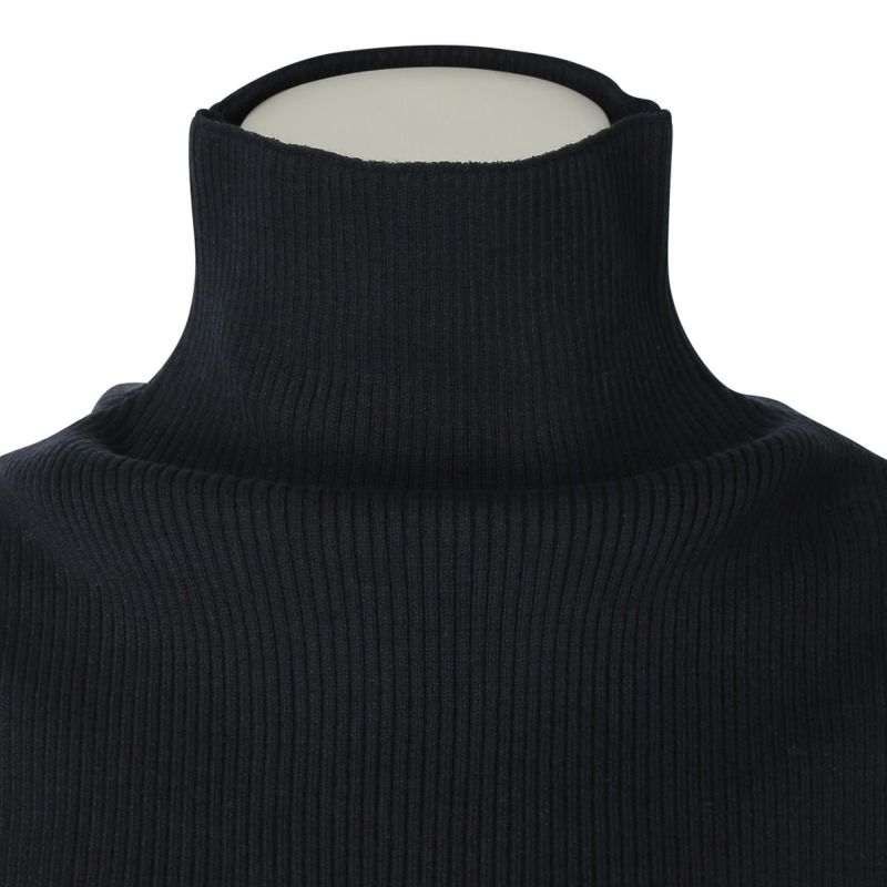 コットン100%のリブ編みニット。ほどよい厚みと伸びで1枚で着てもインナーとしてもおすすめです。合わせやすいネイビーに加え、ボーダーが登場!