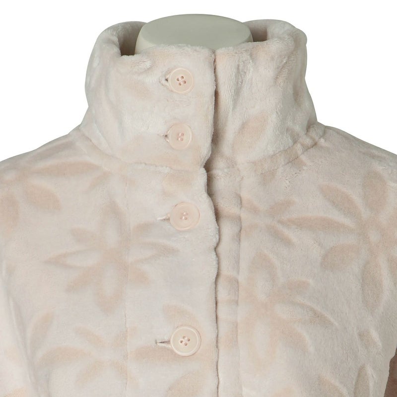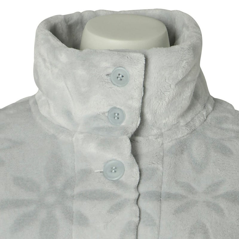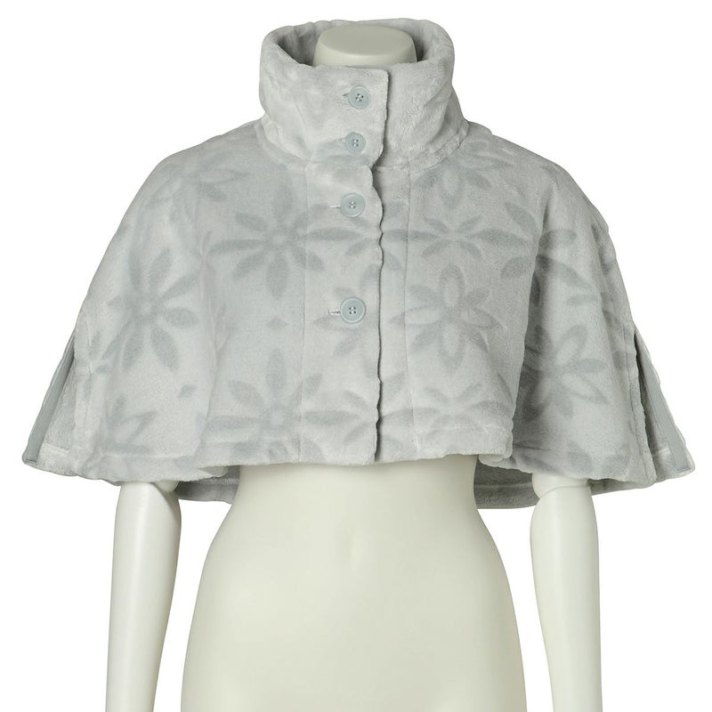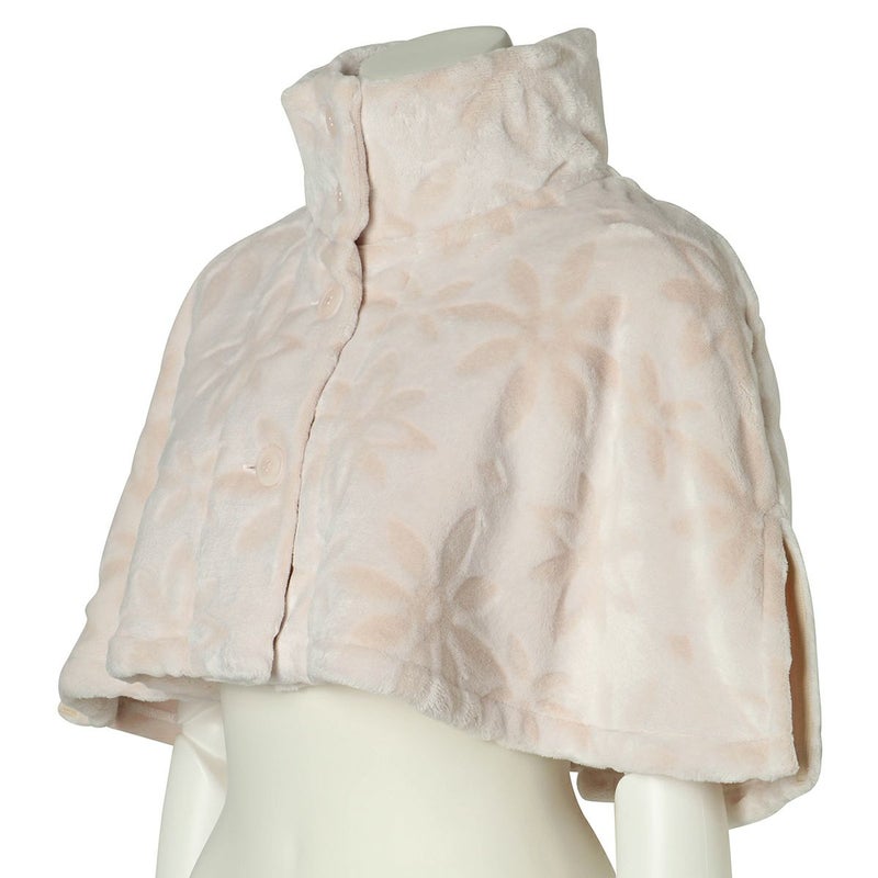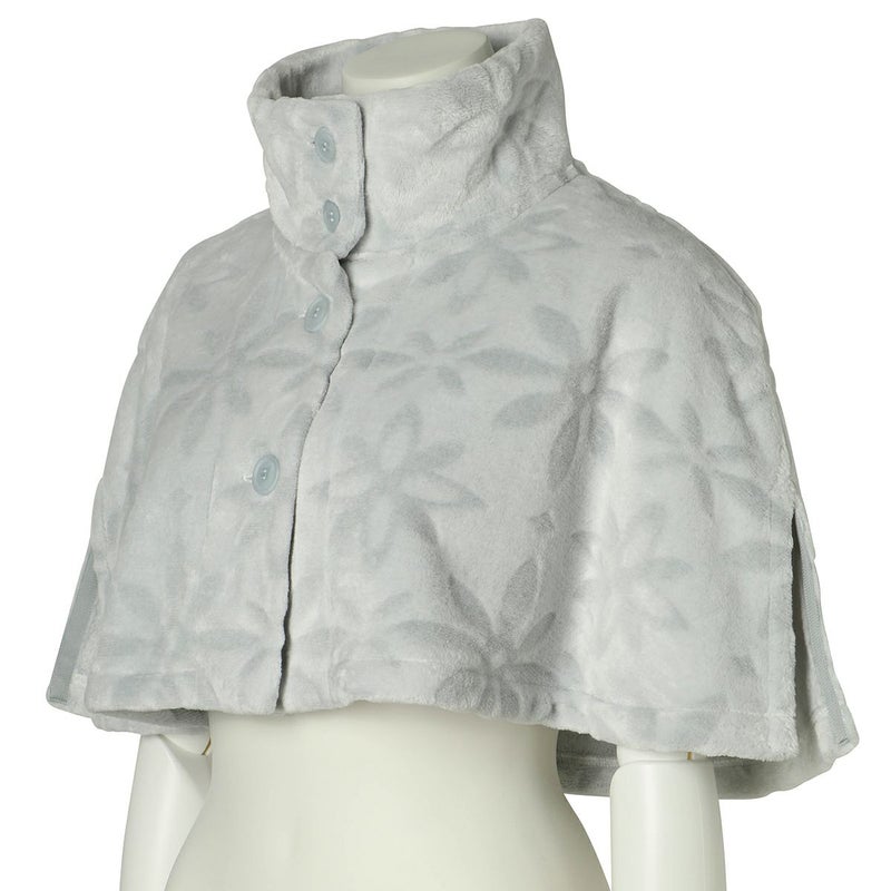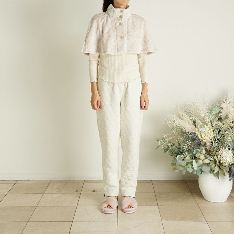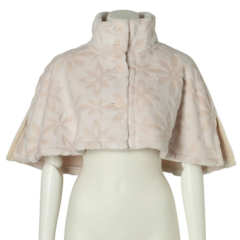 ショルダーウォーマーは、サイドスリット入りで家事の時なども動きやすい作りに◎衿はボタン付きの2WAY仕様。