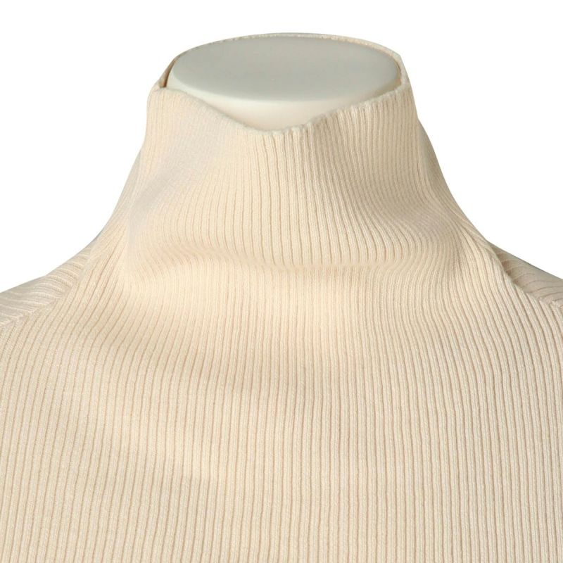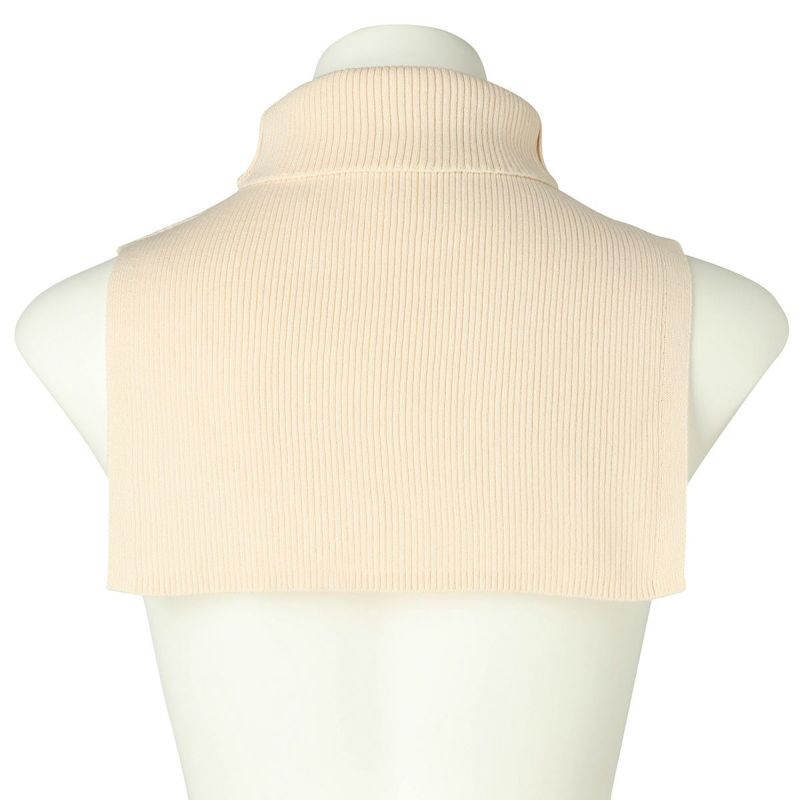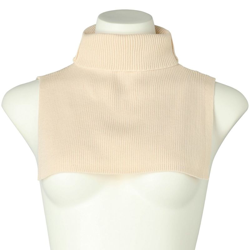 首元から離れすぎず締め付け感もないソフトなオフタートルで肩からデコルテを覆う新型デザイン。