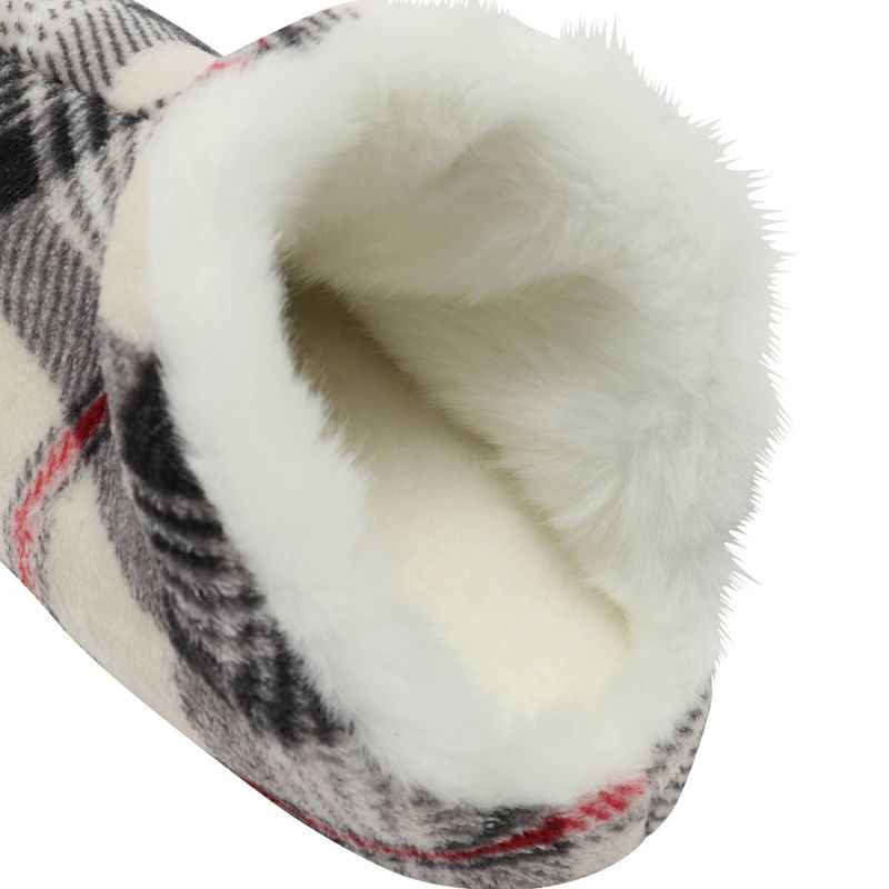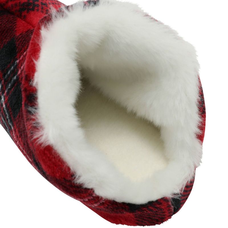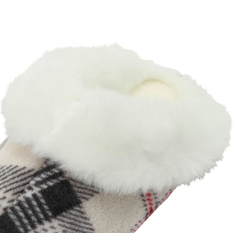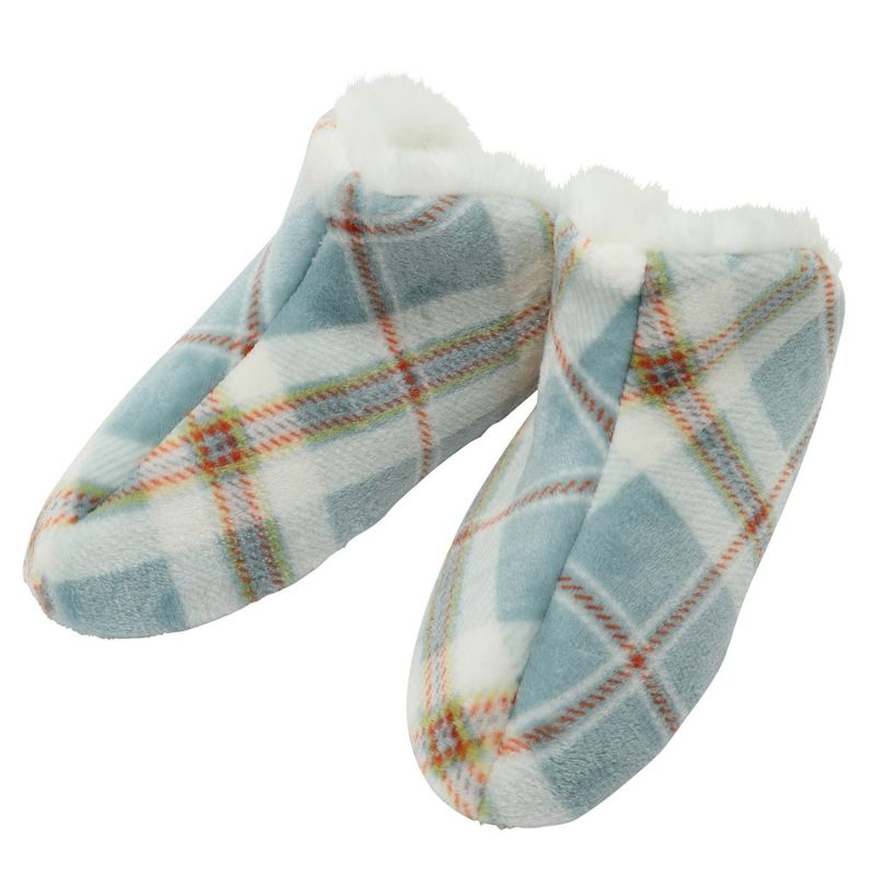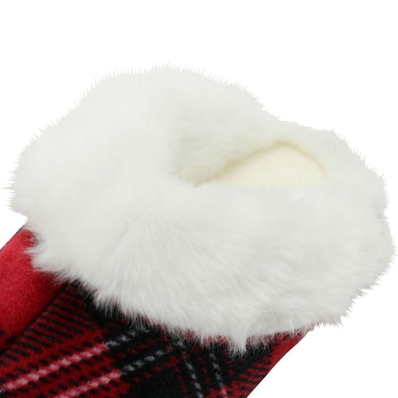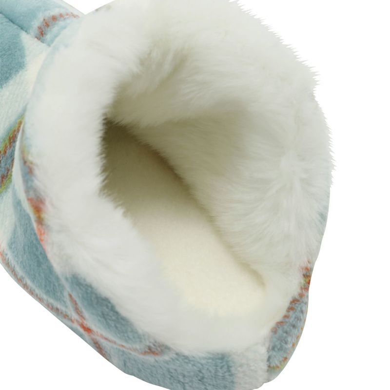 ルームシューズは、内側がボアになったデザインで足元の防寒に◎脚口部分を折り返しての着用も。