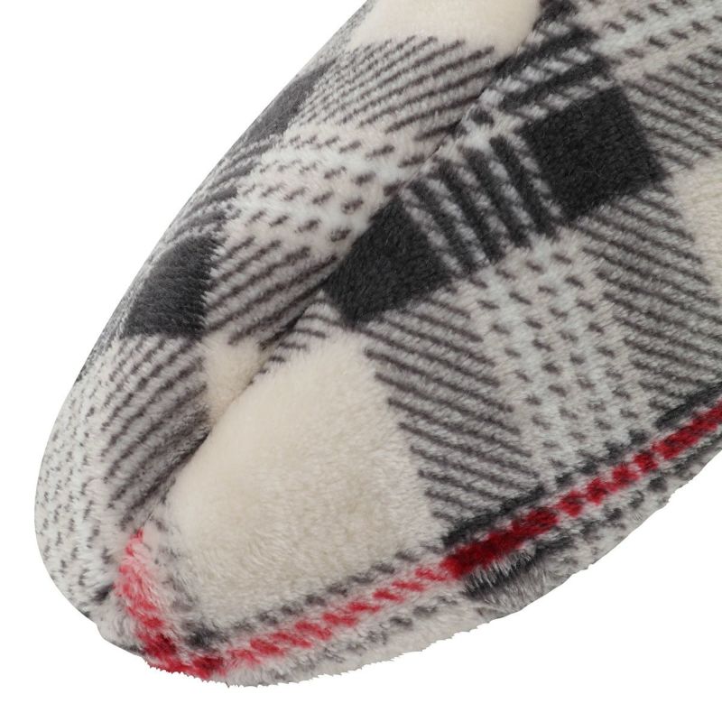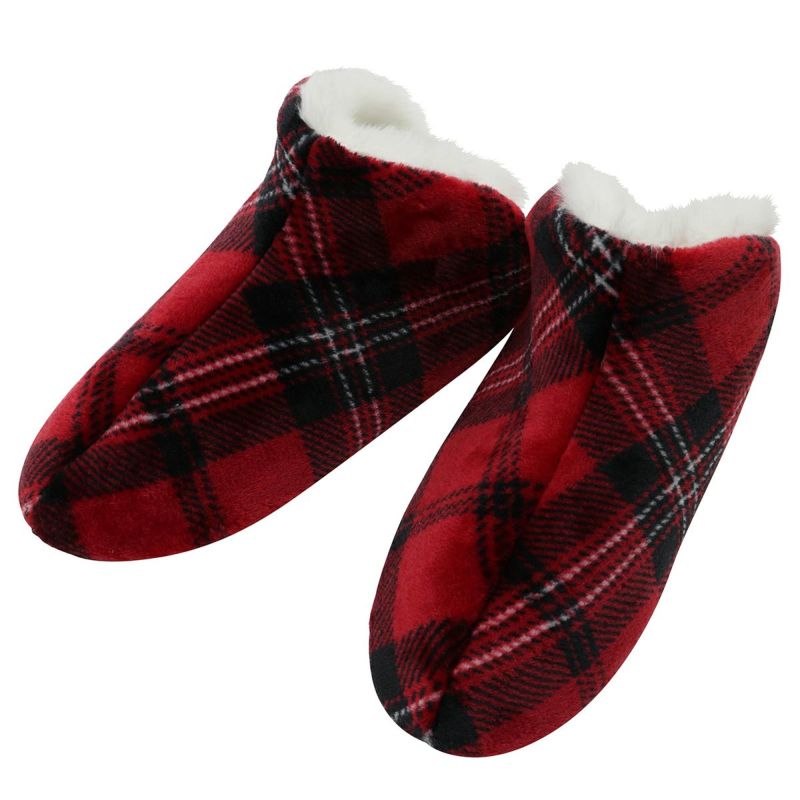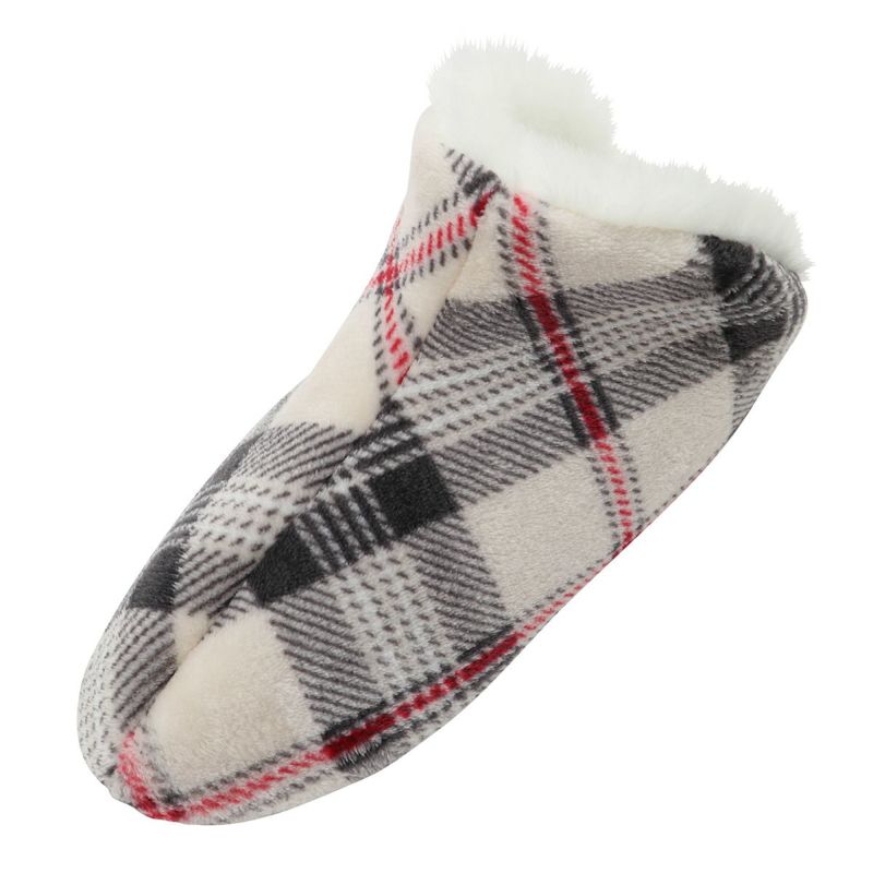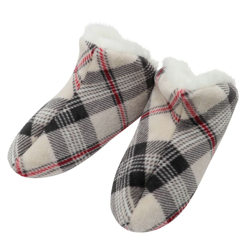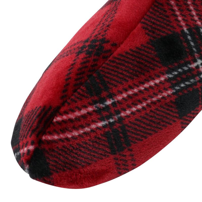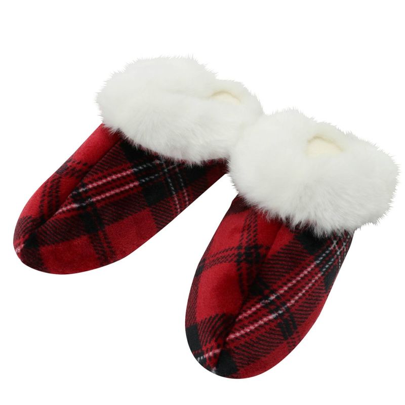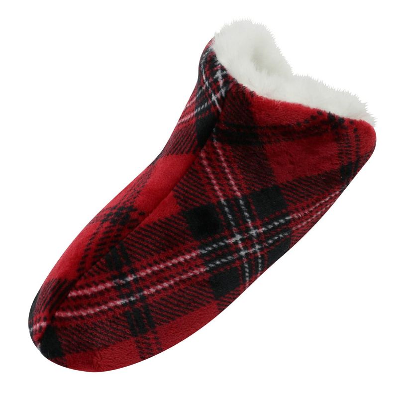 ルームシューズは、内側がボアになったデザインで足元の防寒に◎脚口部分を折り返しての着用も。
