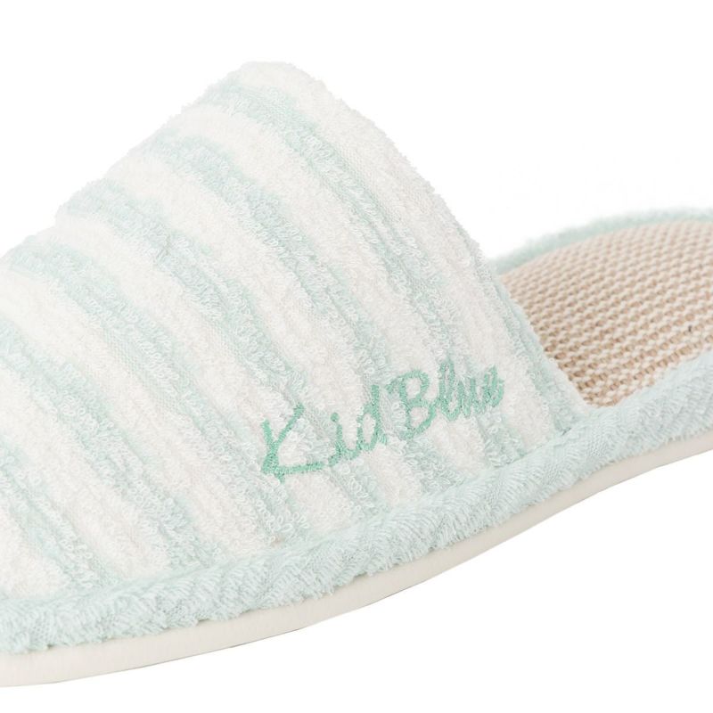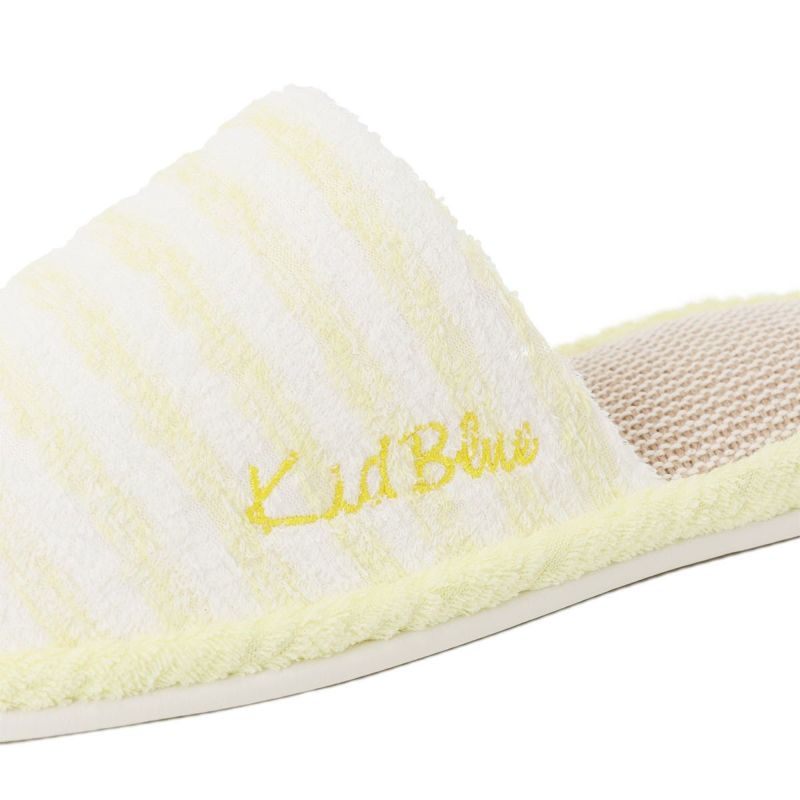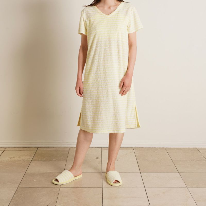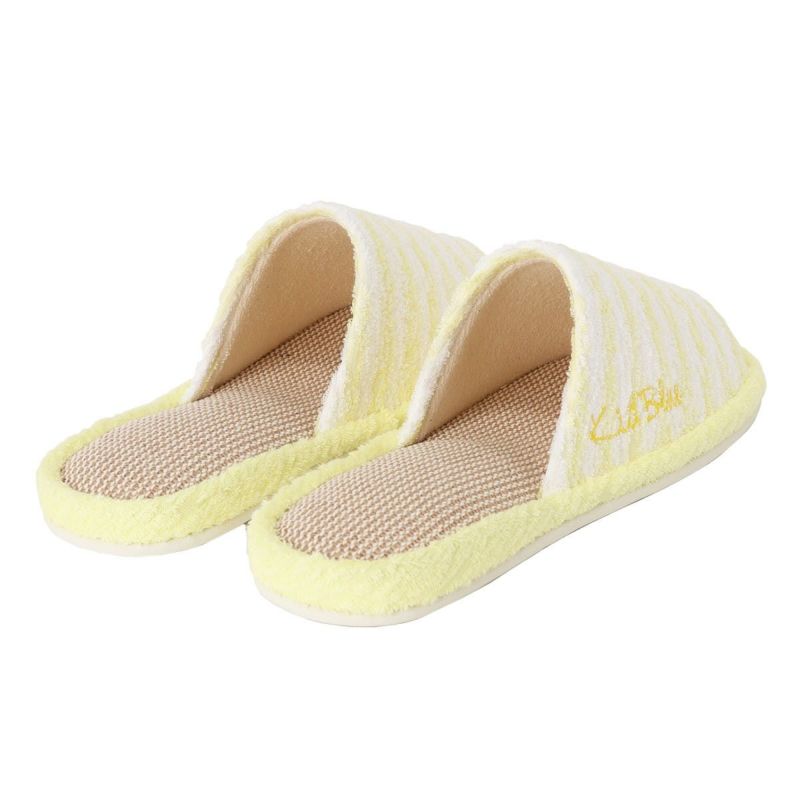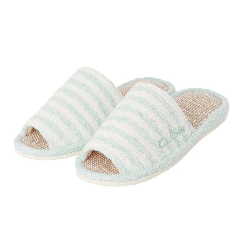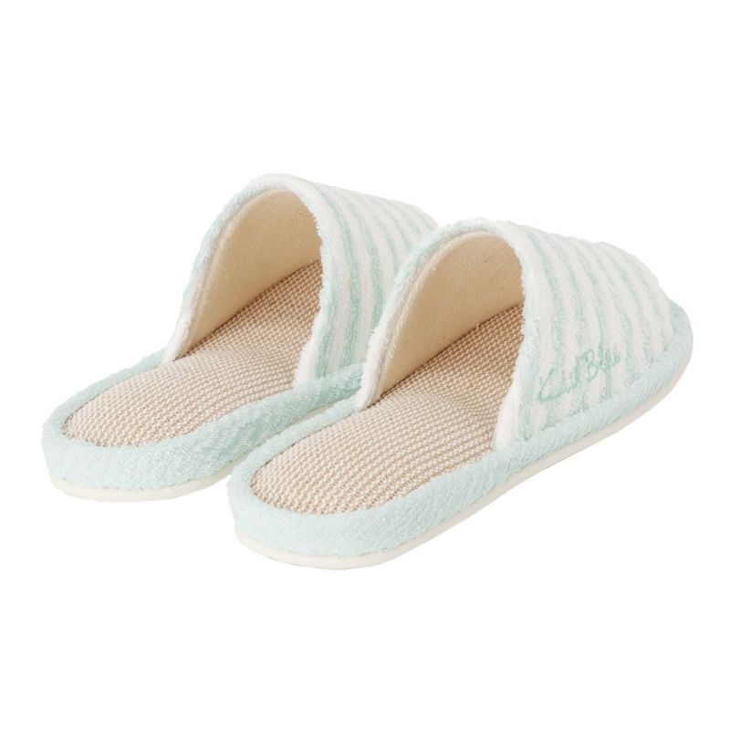 23スラブパイルボーダーのウェアと同素材のボーター柄のスリッパ。インソールはサラッと履ける仕様。ヒール下にはクッションを入れ踵に向かって底を厚くしました。