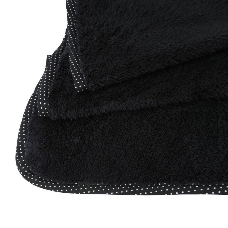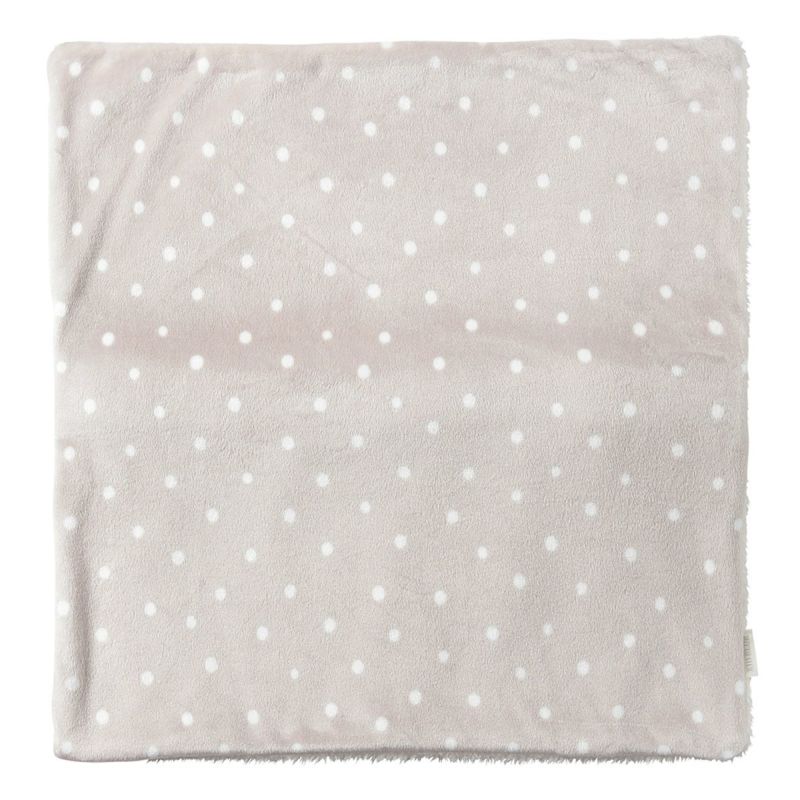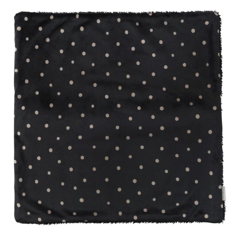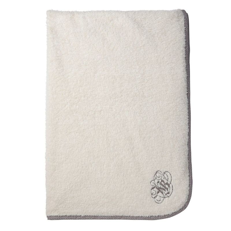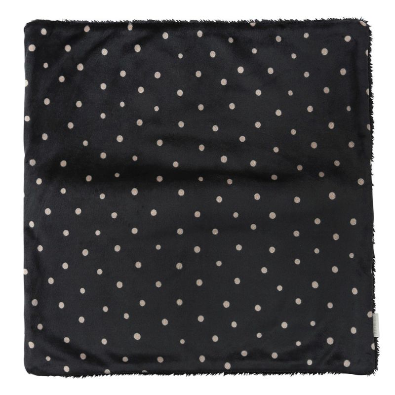 ボアを使用した、肌触りが良く暖かいブランケット。端に施したドット柄のパイピングが可愛らしい印象に。片面がシャギードット、片面がボアのカバー付きで収納のしやすさも嬉しい。