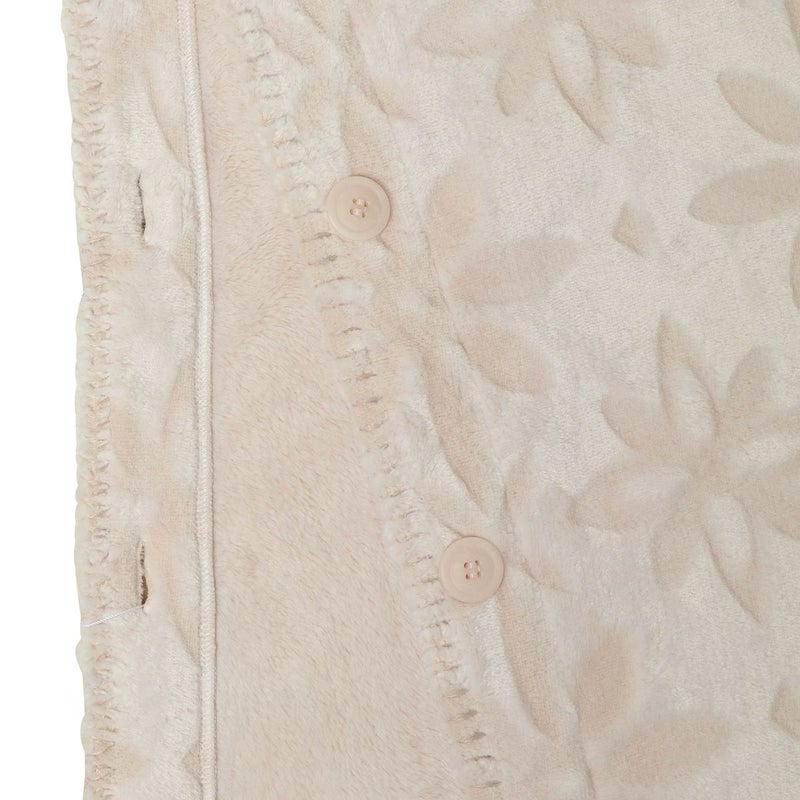 ブランケットは、ボタンをとめて腰に巻いたりポンチョのように羽織ることもできる2WAYタイプ。車内での使用やデスクワーク時に便利なあったかアイテム。