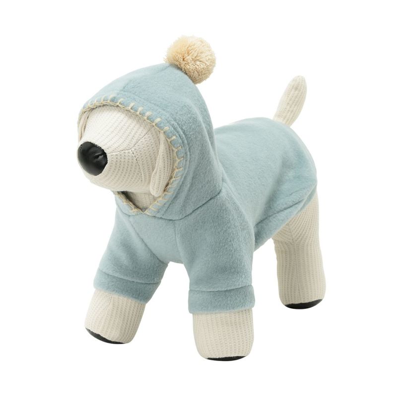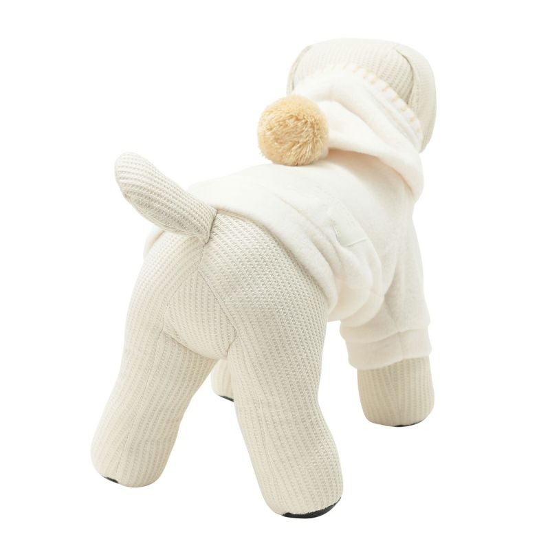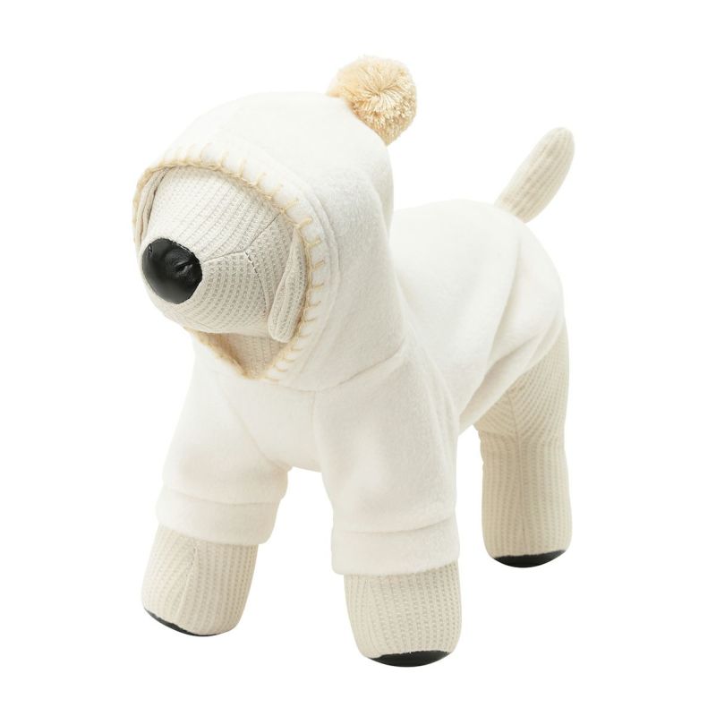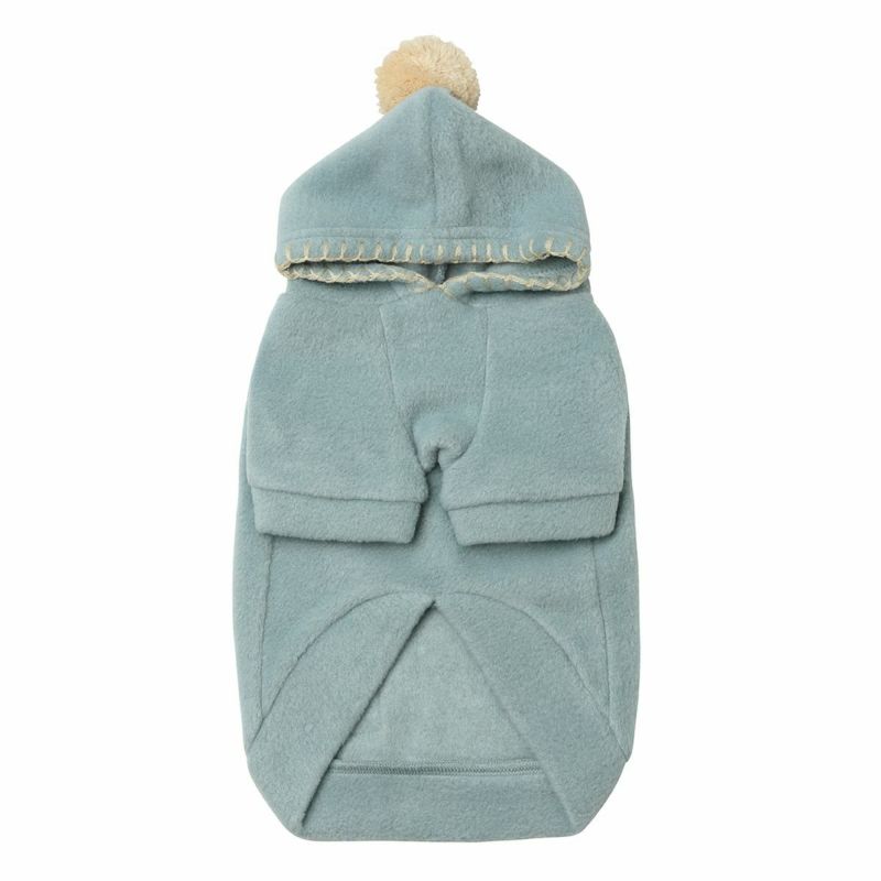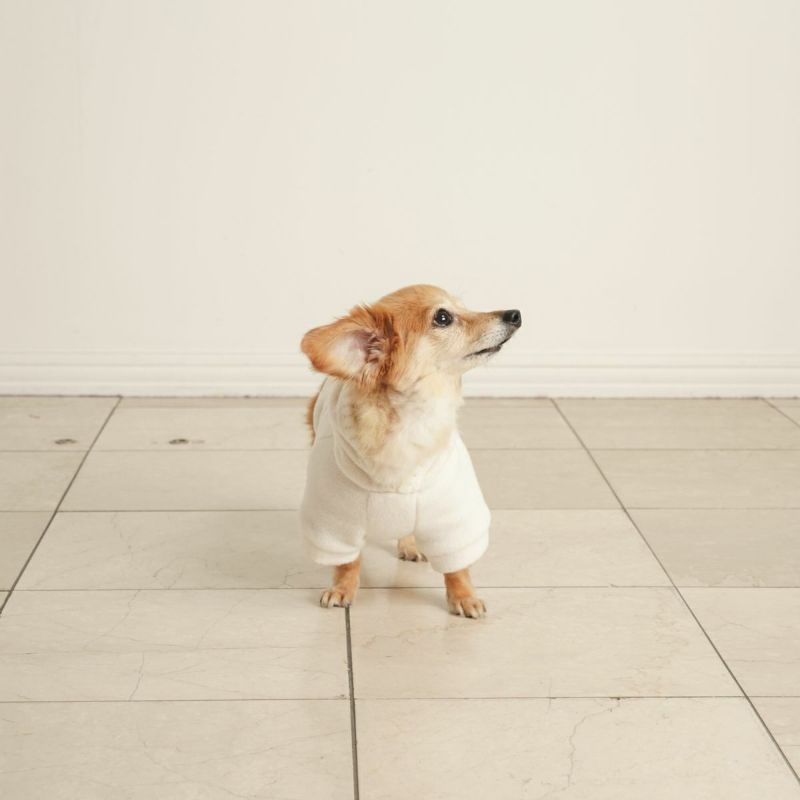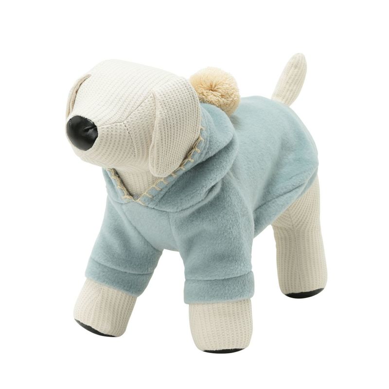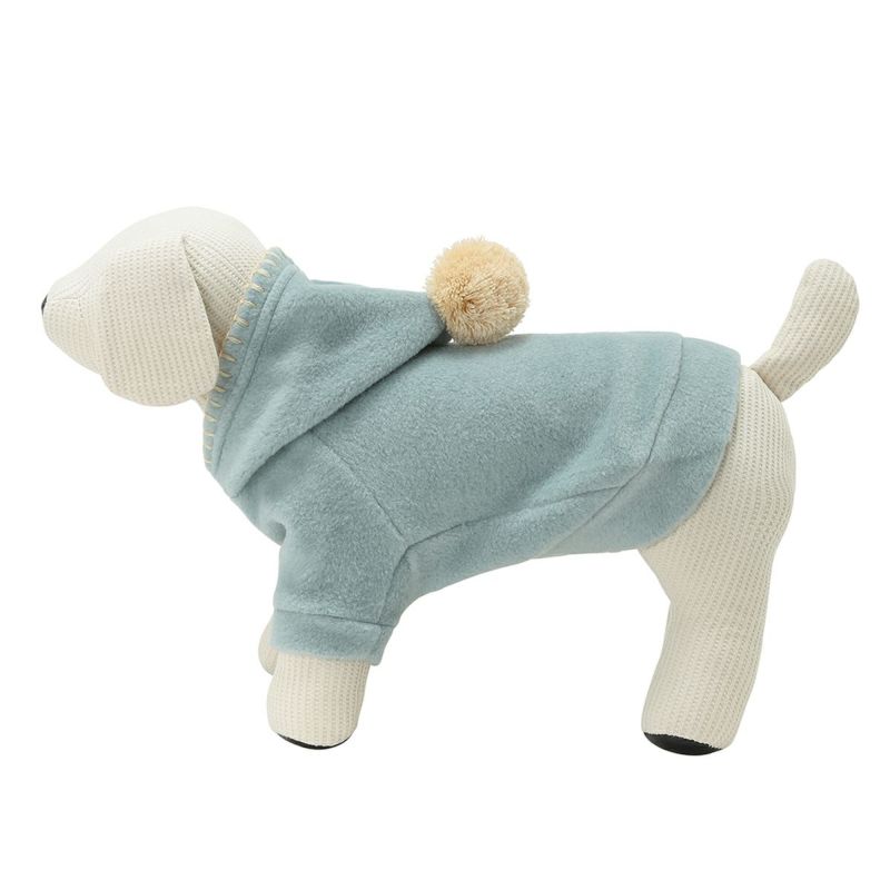 フード周りのブランケットステッチがかわいらしい。ポンポンやロゴネームもポイント。飼い主様とのペアコーデも楽しめます。