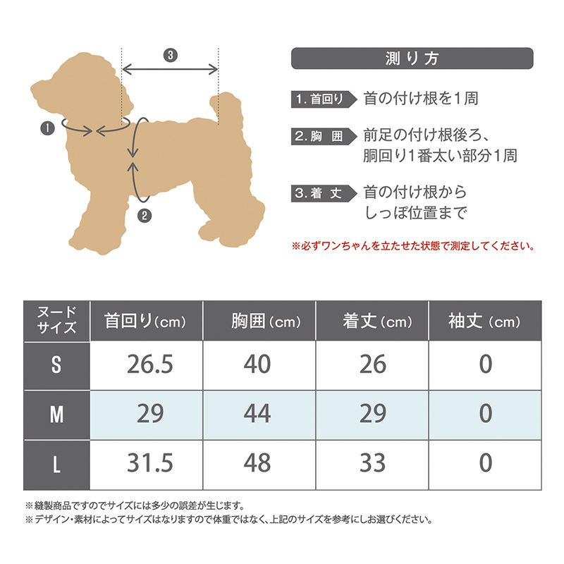 ・タックやプリーツ等の伸縮する部位は、伸ばさない状態で計測しています。