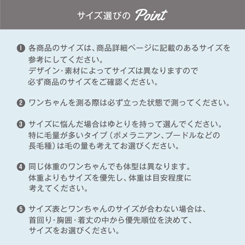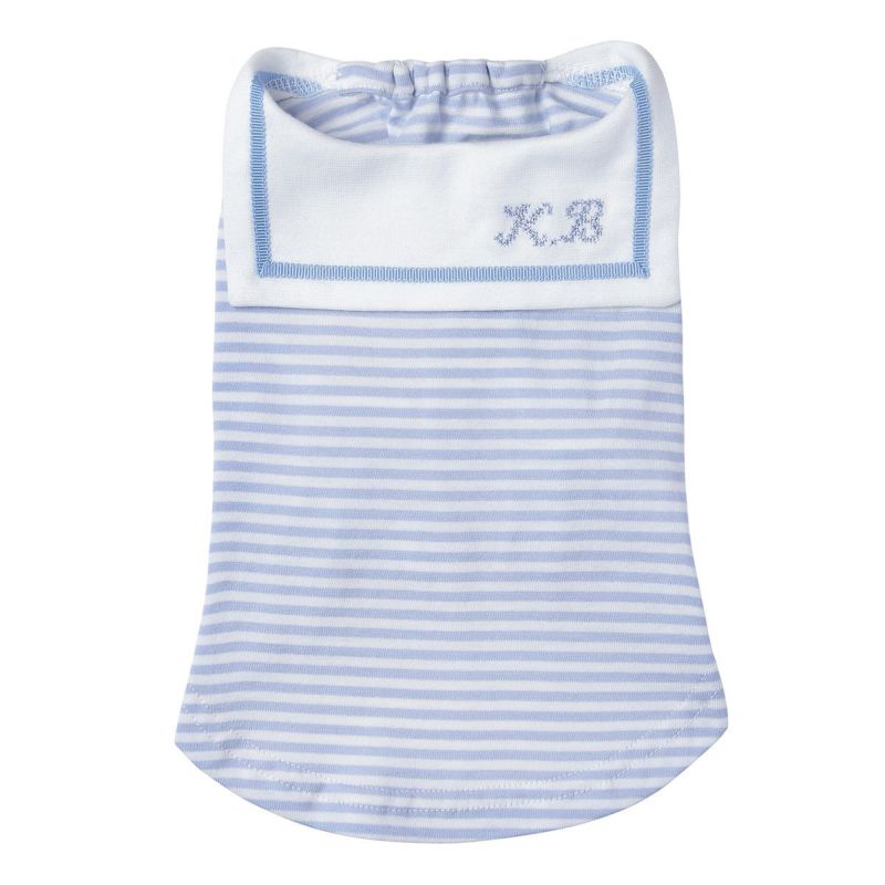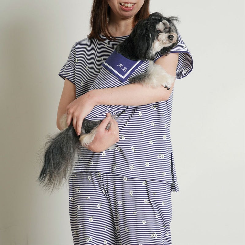 ボーダープチフラワーのナイトウェアウェアシリーズと同素材で、爽やかでカジュアル感のあるボーダー柄が魅力。「キッドブルー」のクロスステッチ風ロゴ刺しゅうがポイント。飼い主様とのペアコーディネートも楽しめます。