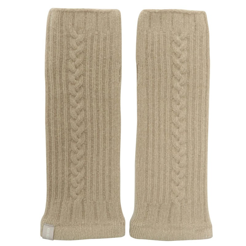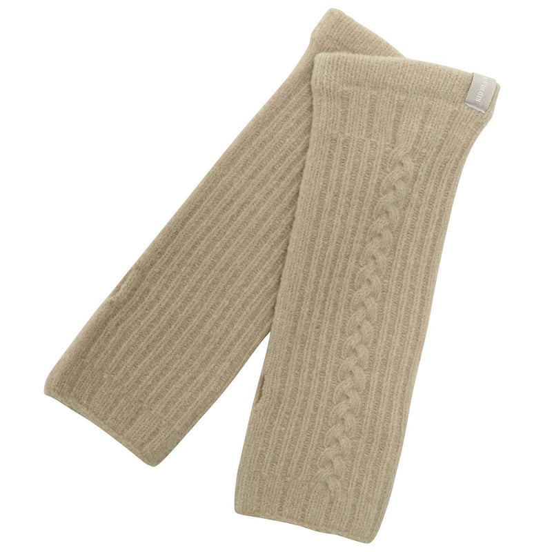 冬におすすめの防寒グッズ。手元の冷え防止におすすめなアイテム。甲部分のケーブル編みが季節感のあるアクセント。