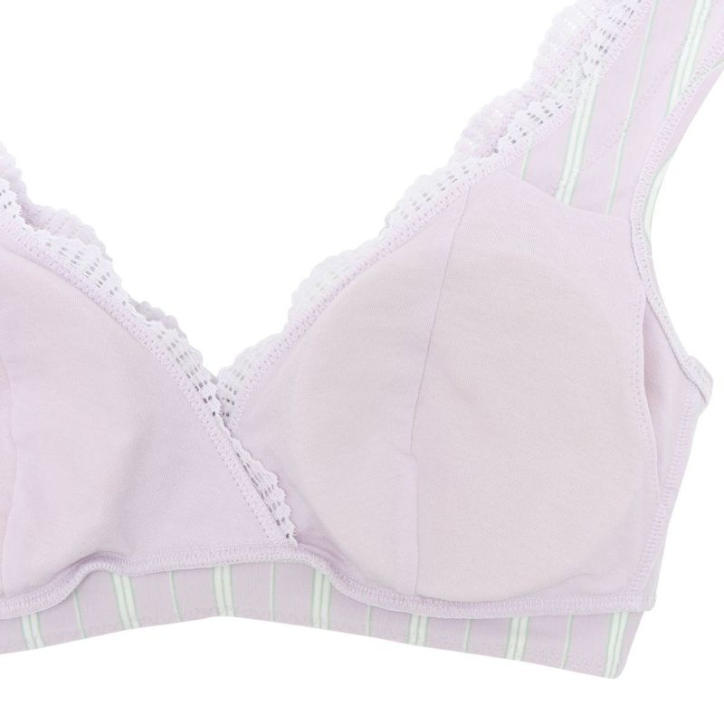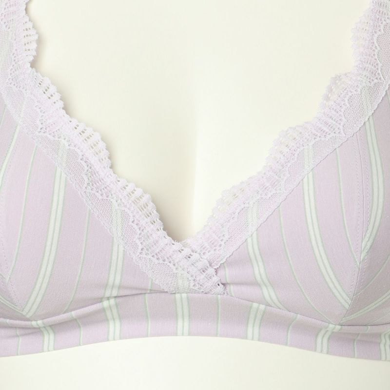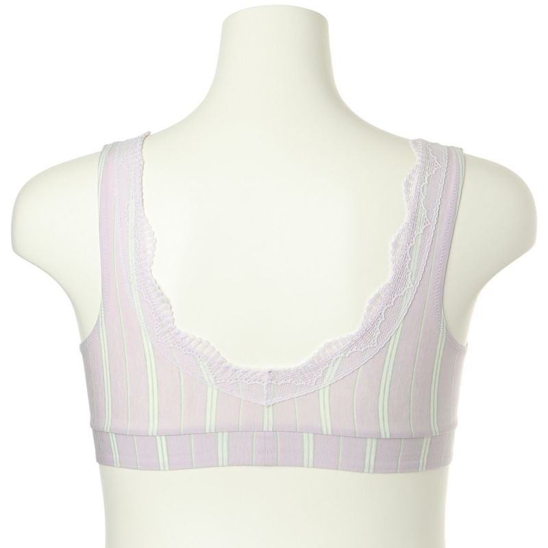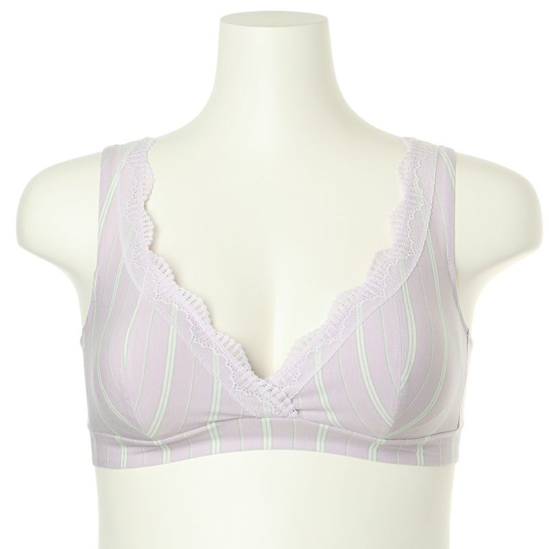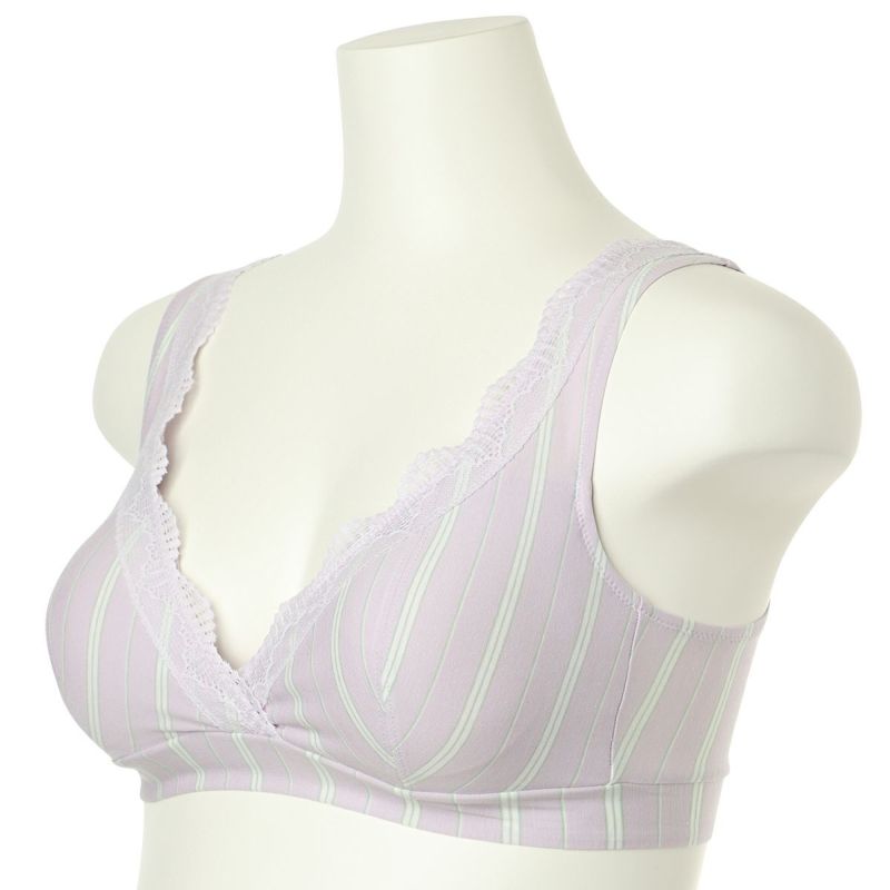 マタニティ仕様のソフトブラジャーは、ストラップが身生地続きのタンクトップタイプ。センターがカシュクールデザインになっており、授乳時も肩ストラップが外しやすいつくり。