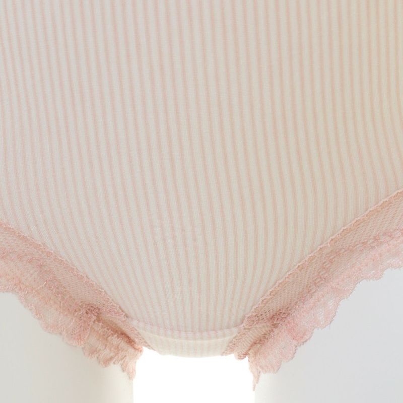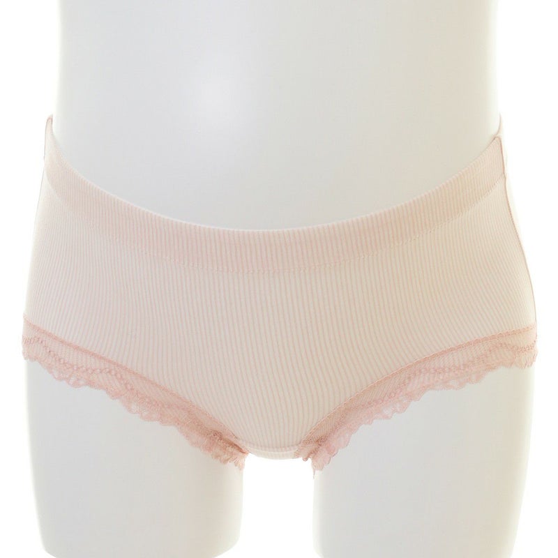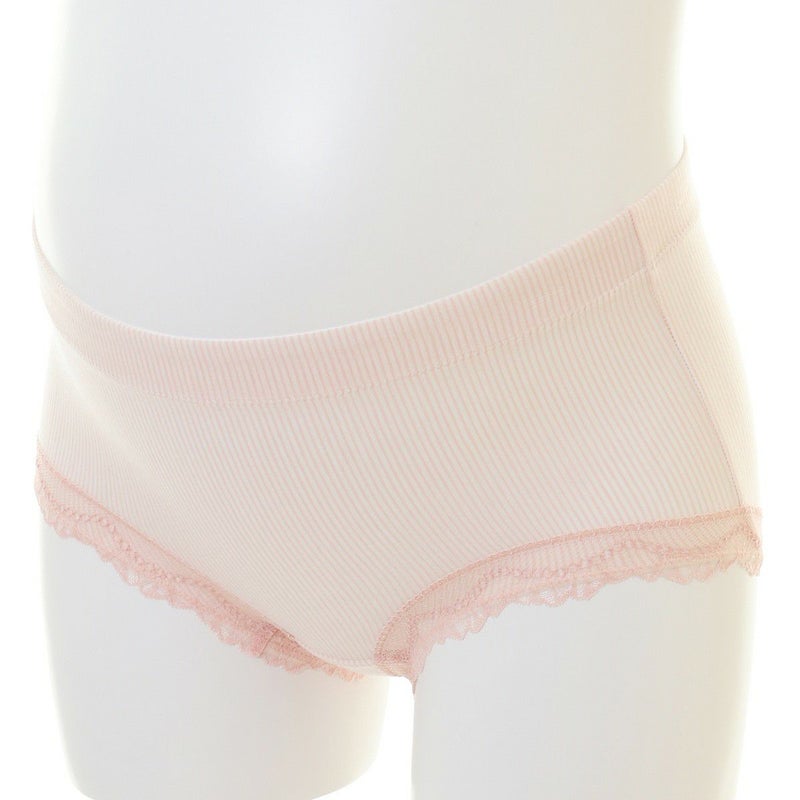 マタニティショーツは産前~産後のマタニティ体型のサイズ変化にも対応する設計です。レースは肌にあたらないよう重ね付けしています。