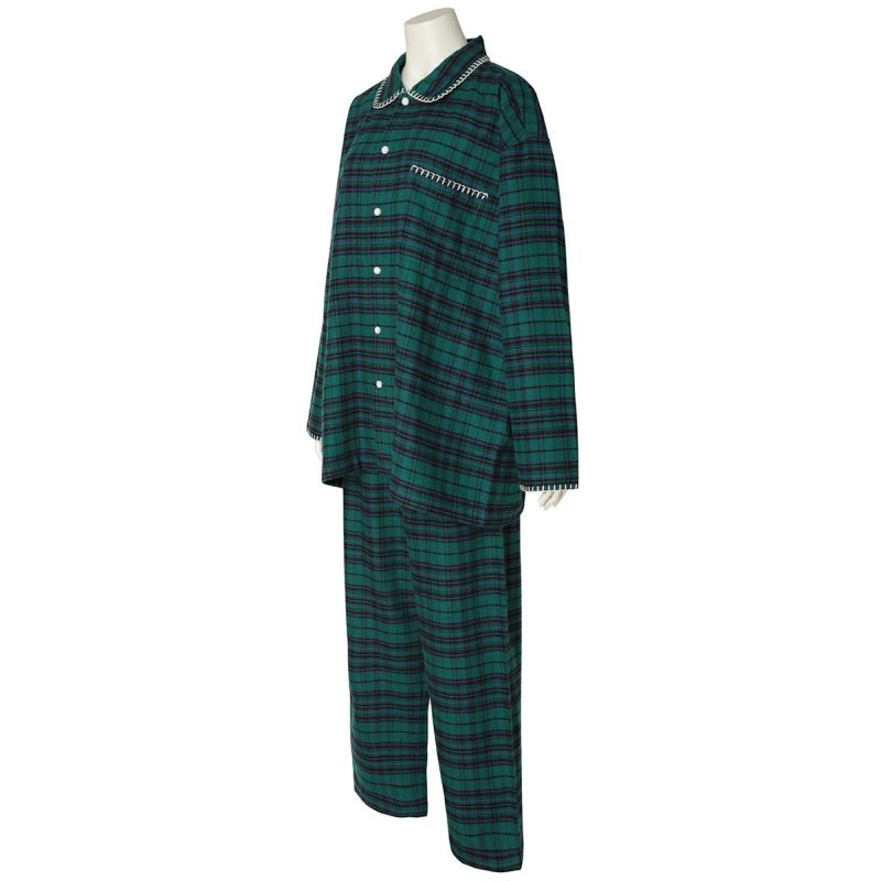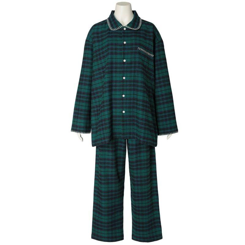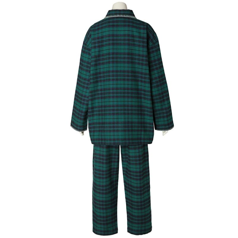 トレンド感のあるブランケットステッチをポイントにした全開タイプのパジャマ。ベーシックなシルエット。幅広い年代の方に好まれる素材は同シリーズレディースパジャマ(KNAK547)ナイティ(KNAM547)とペアギフトもおすすめ。
