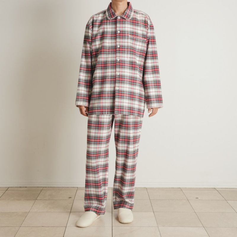 ブランケットステッチが効いたネルタータンチェックシリーズ。椿オイル加工を施した柔らかく肌触りの良い綿100%の人気素材。肌側に起毛をかけ暖かく肌寒い季節にぴったり。