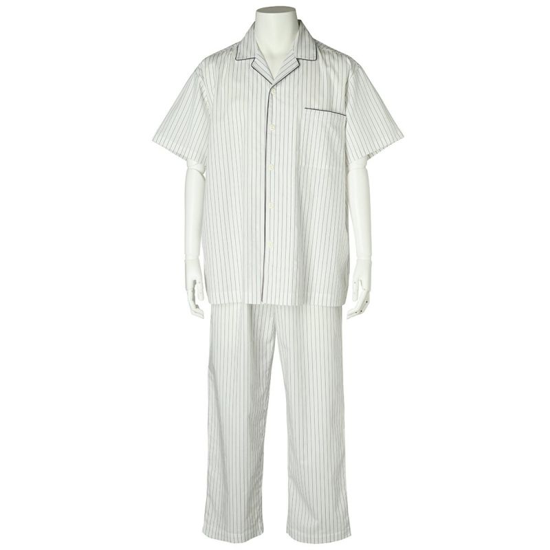 メンズ半袖パジャマは、パイピングをあしらったオープンカラーデザイン。メンズは刺しゅう無しで、好みや体型に合わせて女性の方にもおすすめ◎