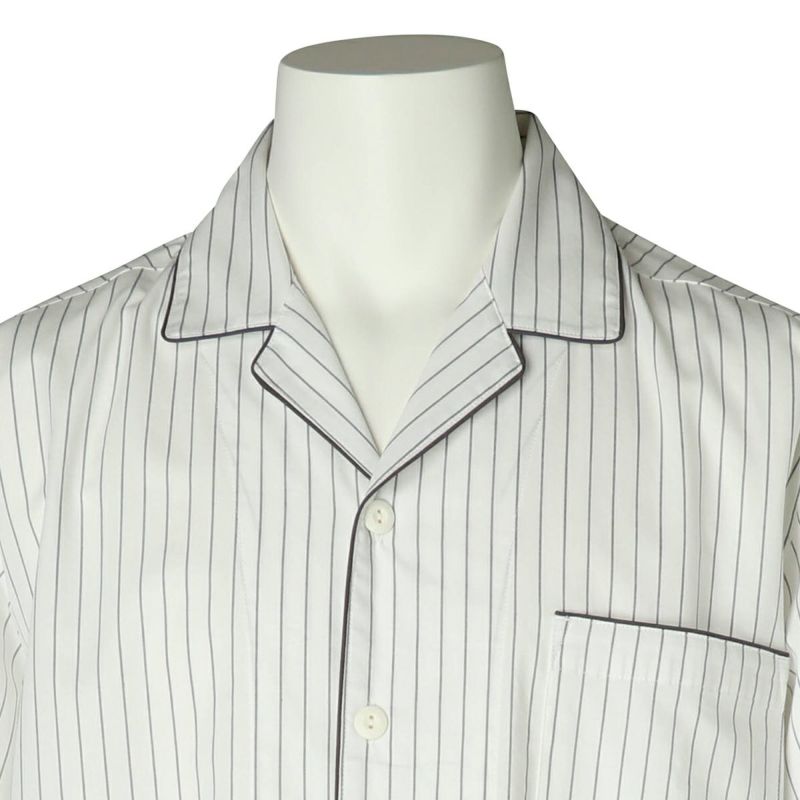 ピンストライプデザインのナイトウェア。シンプルで爽やかなデザイン、綾織で透けにくく、スリーシーズン対応可能な素材感