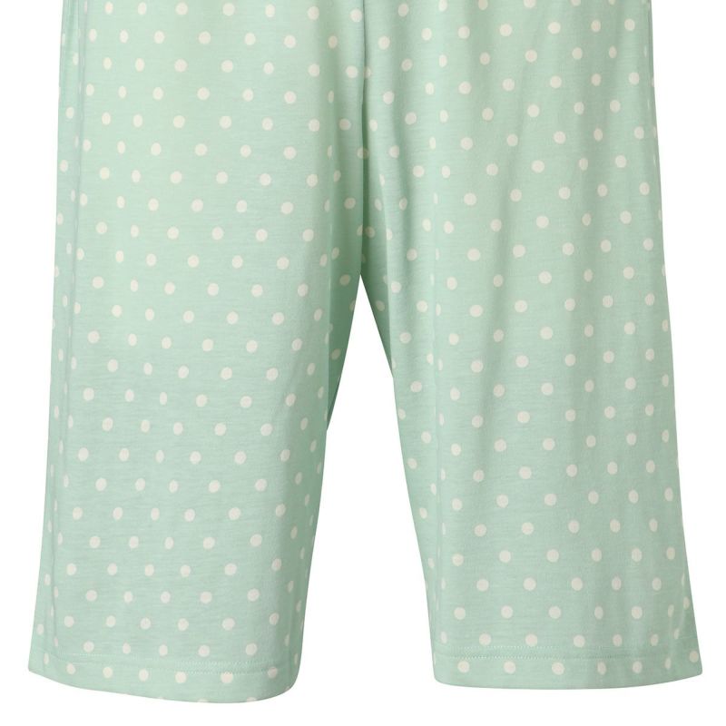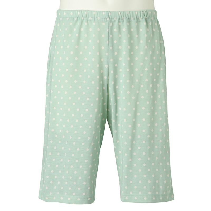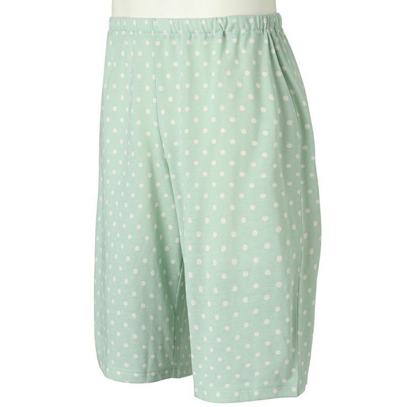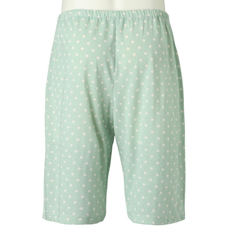 キッドブルーのアイコニックなドット柄が爽やかなナイトウエアシリーズ。無地部分は綿100%天竺、ドット部分は透けにくい綿ポリエステル天竺。