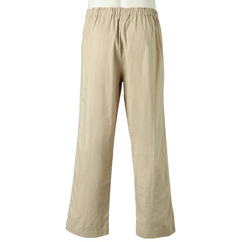 スーピマコットン混のWガーゼシリーズ。表面に自然な微光沢のある高級感のある素材。椿オイル加工で柔らかな風合いに仕上げました。配色のサテンパイピングとロゴ刺繍を効かせ、ホテルパジャマのような上質な印象に。