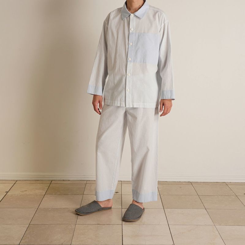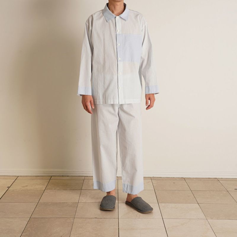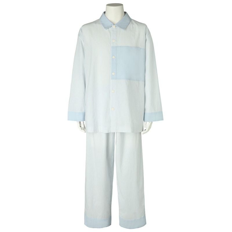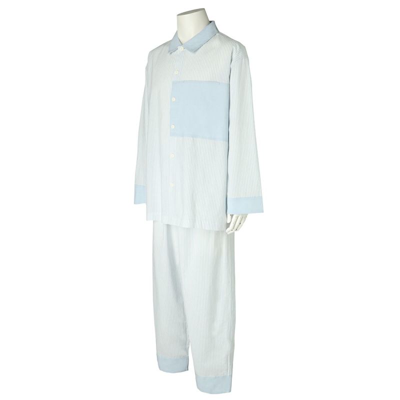 メンズ長袖パジャマは、ベーシックな開襟デザインでデイリーに使いやすい。大きくとった胸ポケットがアクセント。レディースの「KBエンブレースN」と同素材なのでお揃いでも、ペアギフトにもおすすめです。